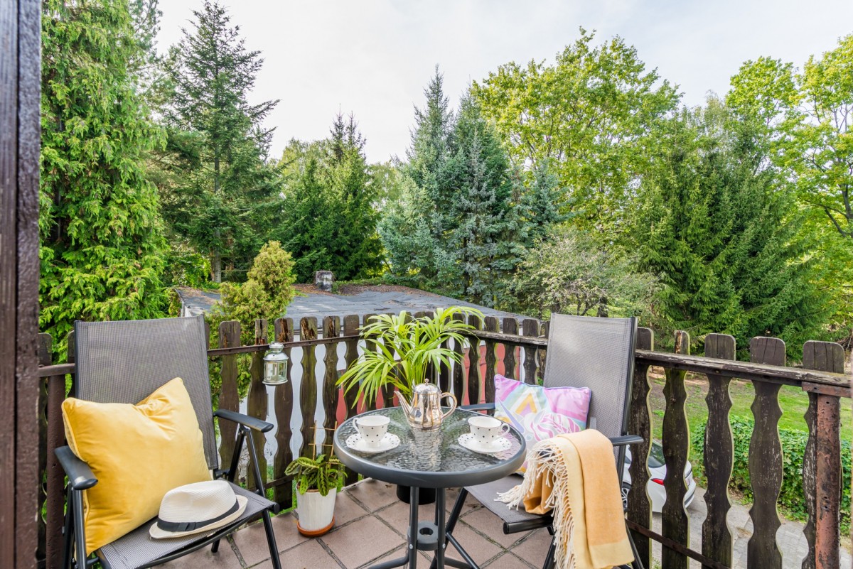 Dom otaczają nasadzenia krzewów oraz drzew co dodaje posesji prywatności i uroku.