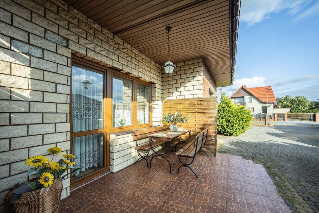Zbudowany z cegły i pustaka, wyposażony w okna i instalacje w bardzo dobrym stanie, gwarantuje komfort i bezpieczeństwo.