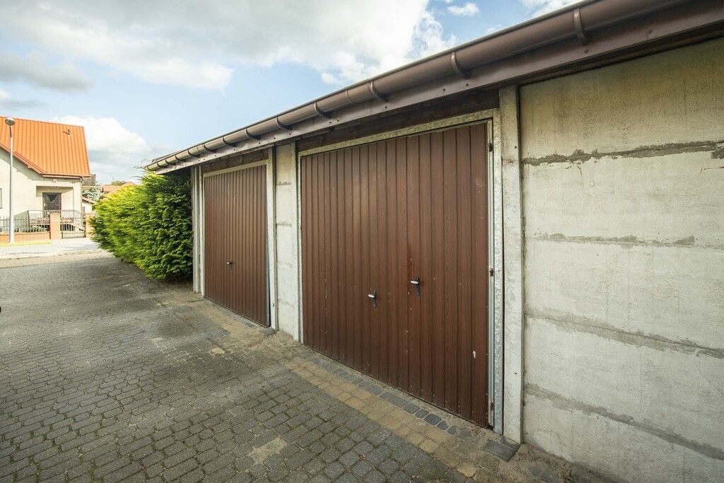 Cechy działki: płaska, prostokątna, z ładnie utrzymanymi nasadzeniami i zadbaną kostką brukową. Na terenie znajduje się ogród z miejscem na grilla oraz ognisko. Przestronny, utwardzony podjazd umożliwia zaparkowanie nawet 4 samochodów, a dodatkowo na działce znajduje się garaż na 2 pojazdy. Istnieje możliwość rozbudowy garażu lub postawienia dodatkowych pomieszczeń gospodarczych.