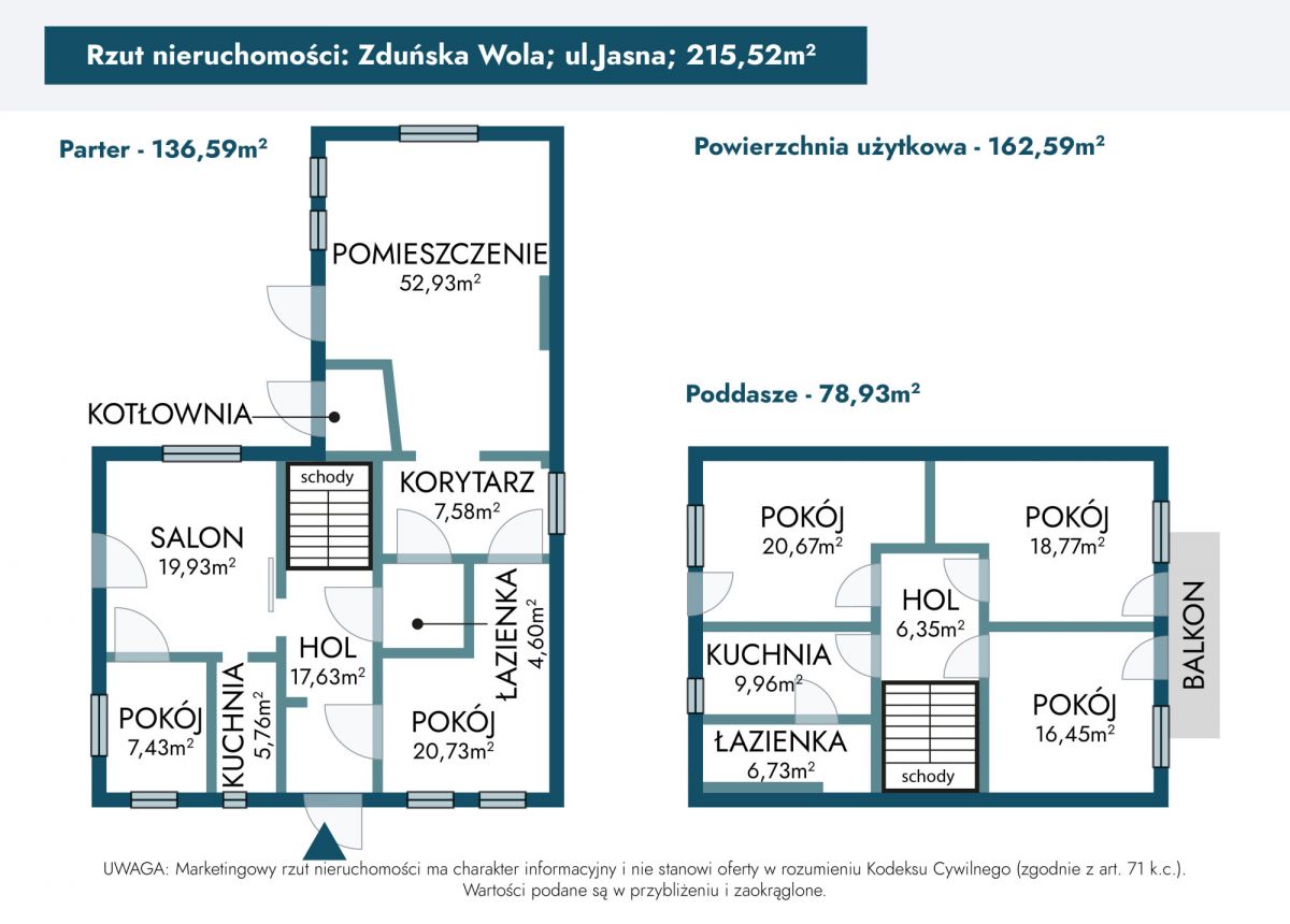 Część mieszkalna - powierzchnia całkowita -215,52 m²