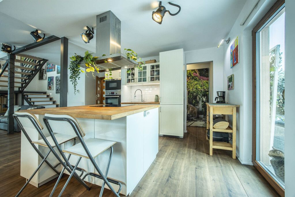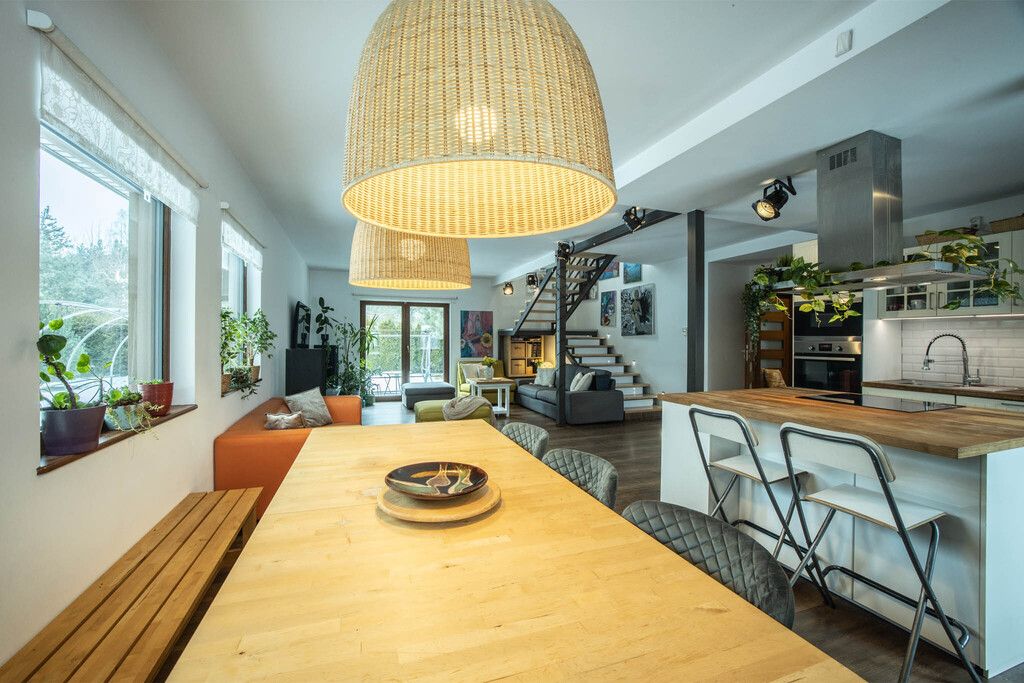 Dom położony jest w spokojnej okolicy przy kameralnej uliczce z zabudową jednorodzinną. To miejsce idealne dla osób, które chcą mieszkać blisko natury, ale nadal mieć szybki dojazd do miasta.