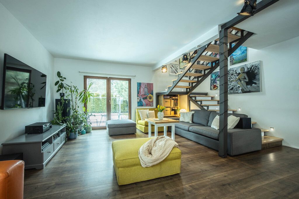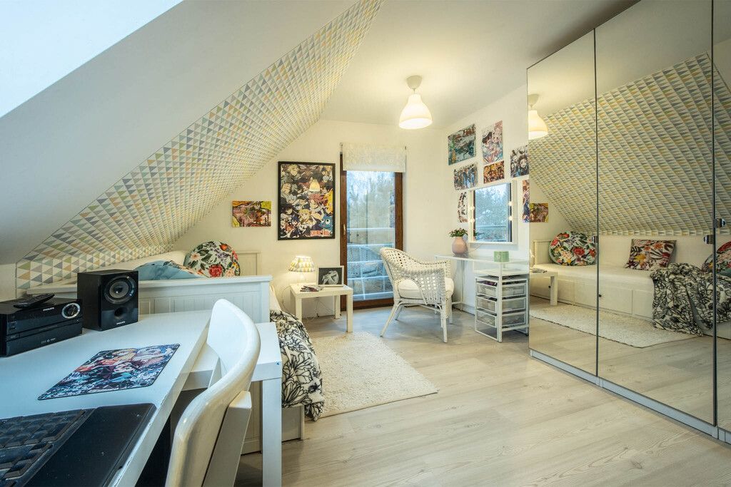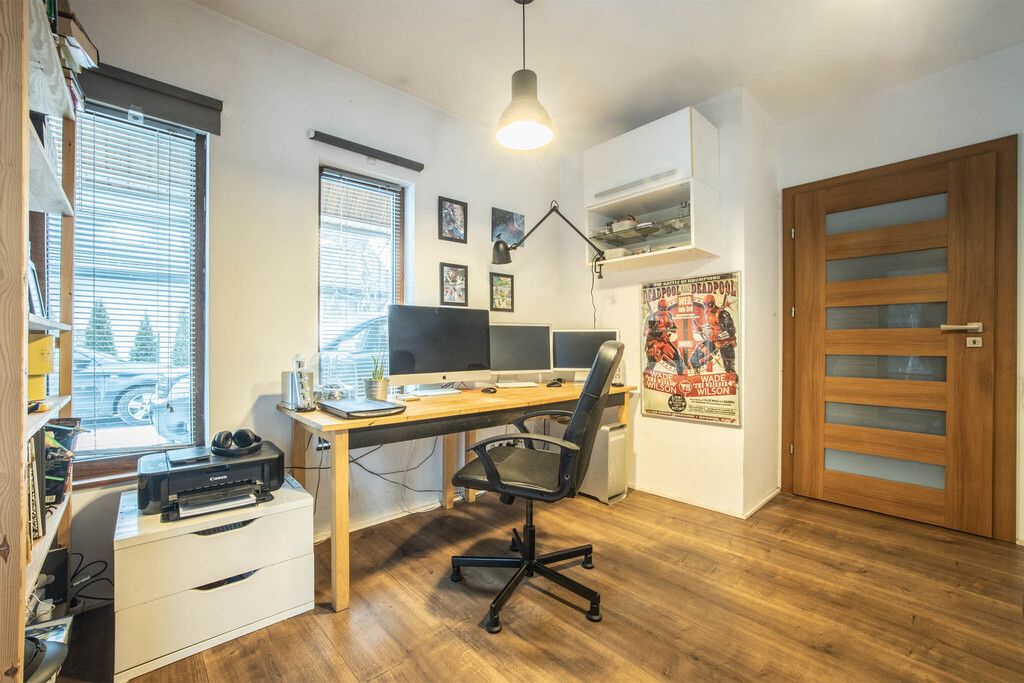 Przemyślany układ pomieszczeń zapewnia wygodę zarówno dla rodziny, jak i dla osób pracujących zdalnie.