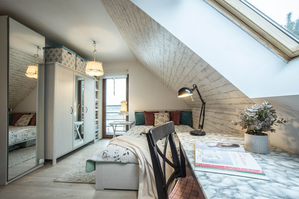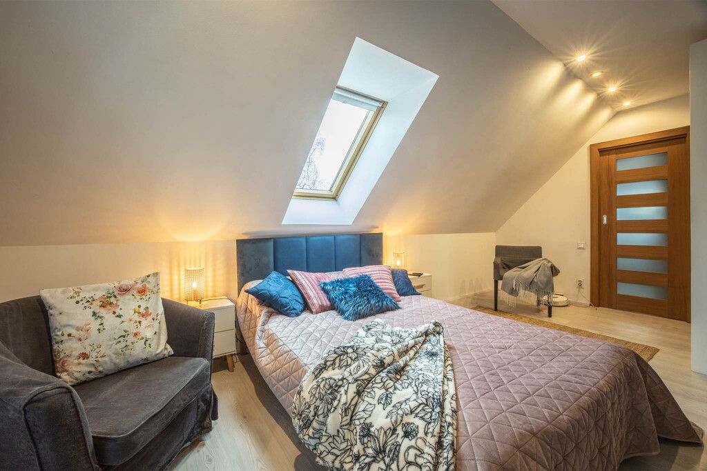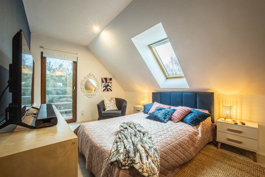 PiętroNa górze znajdują się 3 komfortowe sypialnie. Jedna z nich posiada