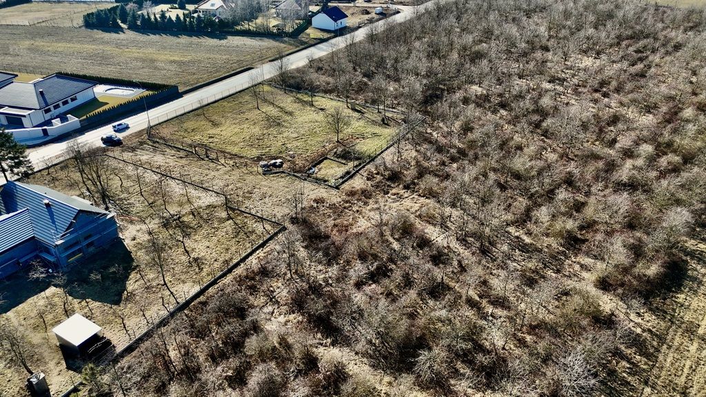 • Wygodny i cichy dojazd: Główny dojazd odbywa się bezproblemową drogą asfaltową. Ostatnie 20-30 metrów to droga wewnętrzna (kupujesz nieruchomość wraz z udziałami w tej drodze). Działa ona jak naturalny bufor – odcina Twoją posesję od bezpośredniego ruchu z ulicy, gwarantując ciszę i prywatność.