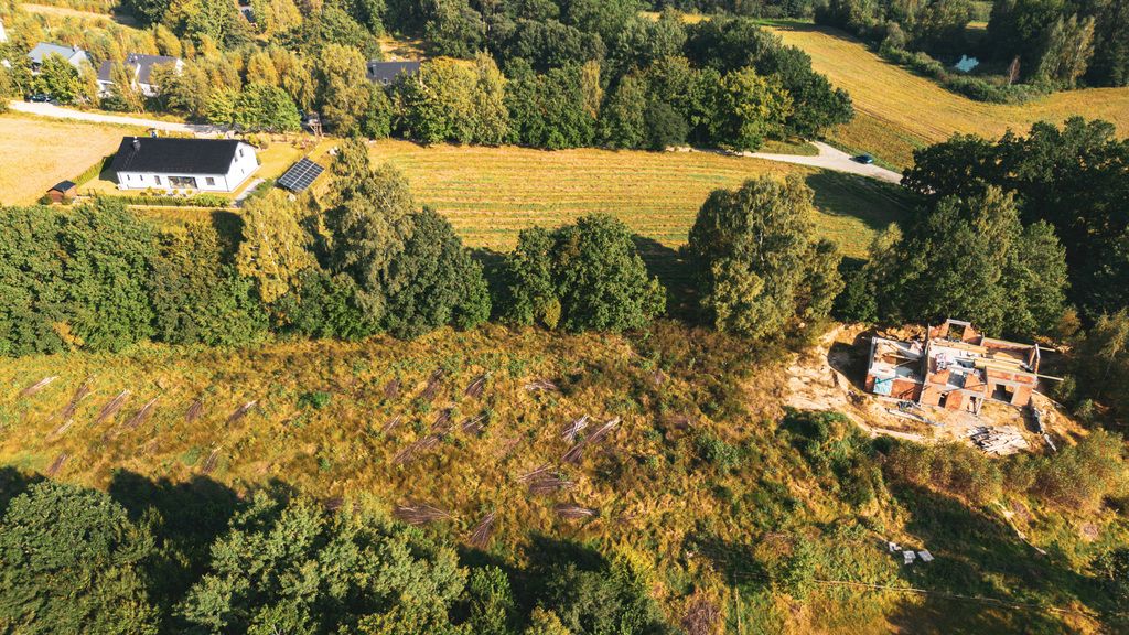 Lokalizacja – Dobrzewino, okolice Gdyni i GdańskaDziałka położona jest w spokojnej części Dobrzewina, w otoczeniu lasów, pól i nowej zabudowy jednorodzinnej. W sąsiedztwie miejscowości Warzno i Karczemki.
