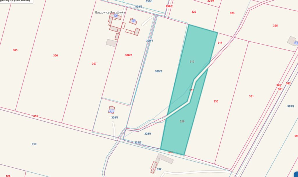 - Media: Działka jest bardzo dobrze uzbrojona! W granicy działki znajduje się sieć wodociągowa i kanalizacyjna. Istnieje możliwość podłączenia prądu zlokalizowanego w drodze.