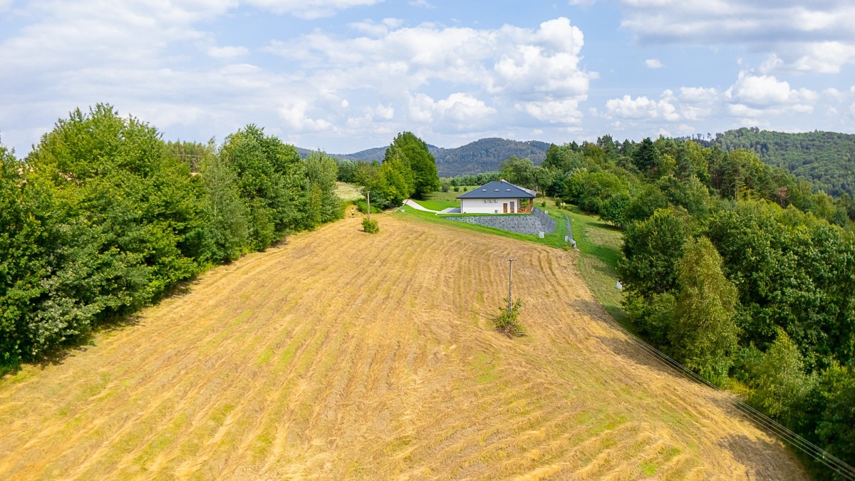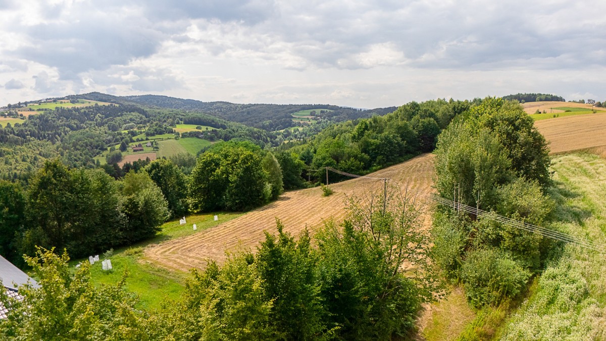 Ta widokowa parcela o wymiarach ok. 130 m x 50 m , usytuowana na południowym stoku , gwarantuje zapierający dech w piersiach widok na Pogórze Rożnowskie . Każdego dnia możesz budzić się z panoramą wzgórz, lasów i pól, w otoczeniu ciszy i natury.