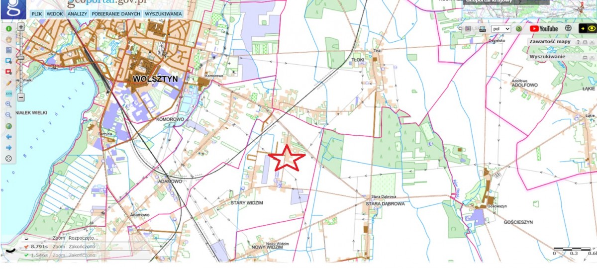 Nieruchomość zlokalizowana w spokojnej okolicy w pobliżu lasku pod Wolsztynem w miejscowości Stary Widzim.