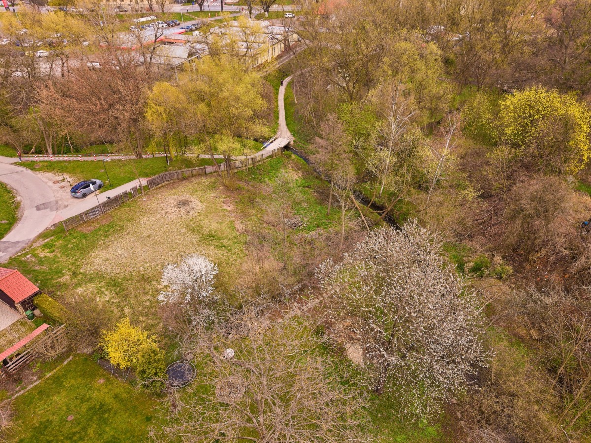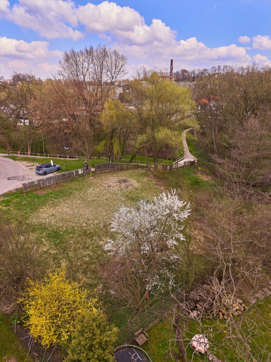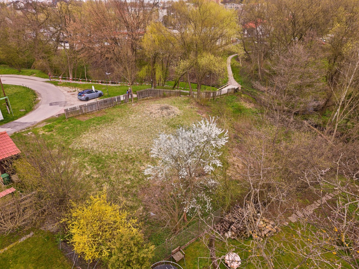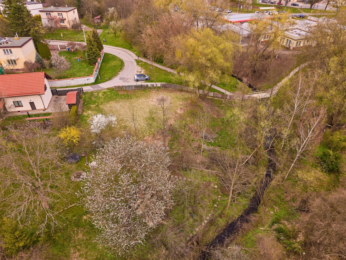Działka w przeważającej części płaska i wykoszona, z lekkim spadkiem w dolnej części w kierunku niewielkiego potoku, co nadaje jej naturalny i kameralny charakter. Teren dobrze nasłoneczniony, z otoczeniem zieleni oraz istniejącą zabudową jednorodzinną w sąsiedztwie.
