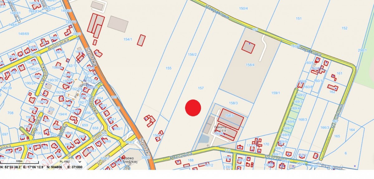 Działka posiada wjazdy z ulicy Średzkiej, Pszczelnej i Rzepakowej.