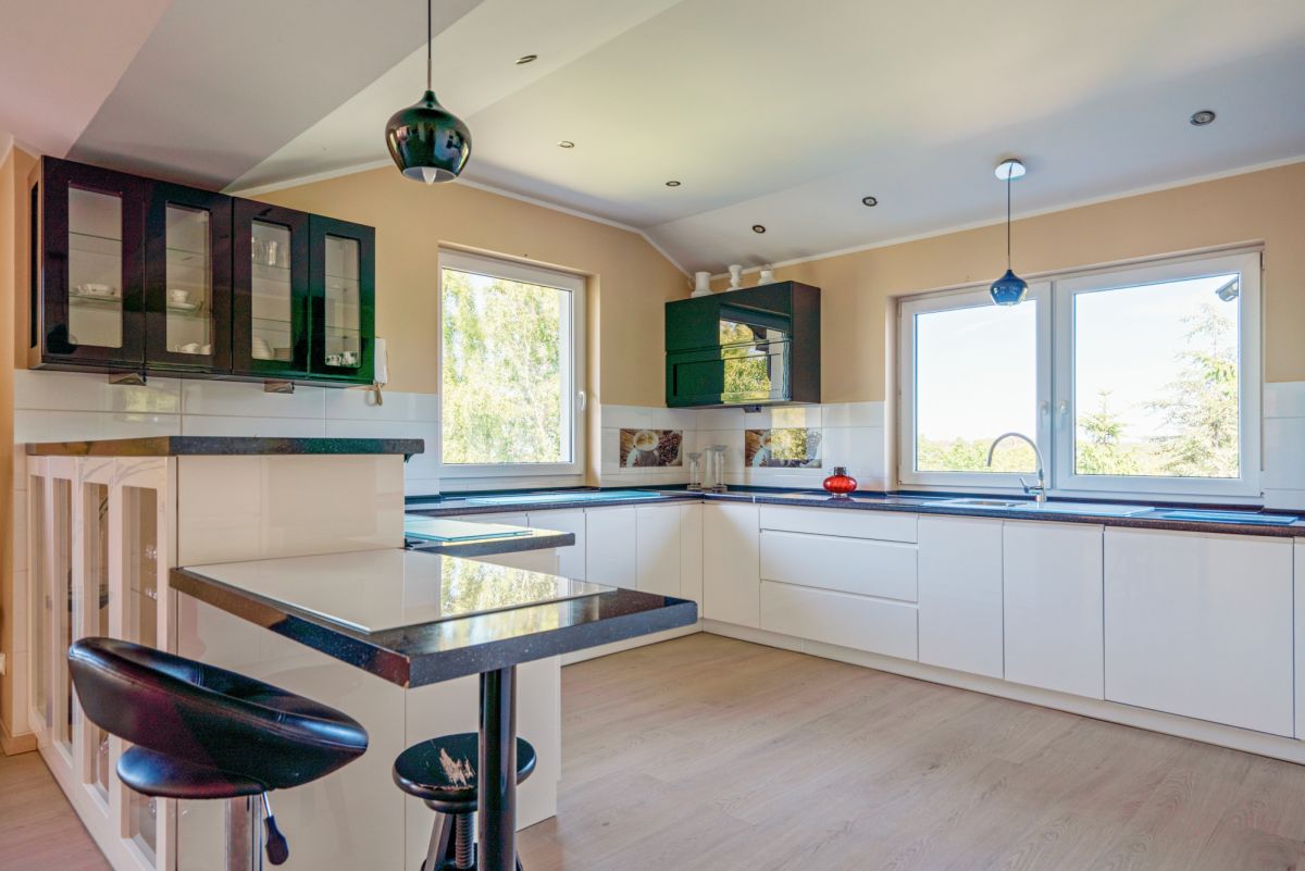 Nowoczesny dom z 2021 r., wyposażony w windę, rekuperację, ogrzewanie gazowe Buderus.