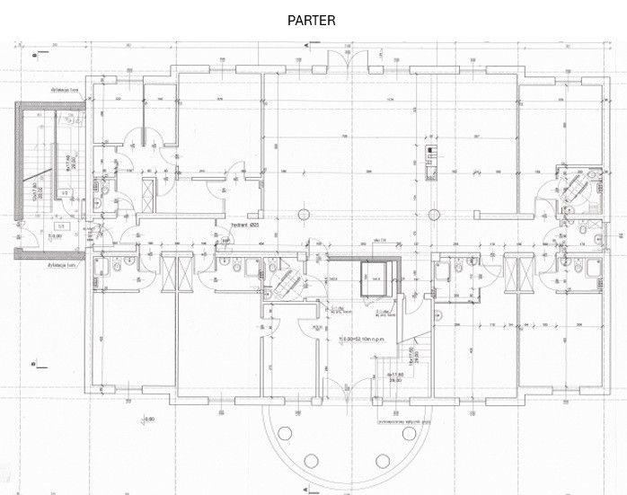 Parter: 5 pokoi, kuchnia, 2 jadalnie, toalety