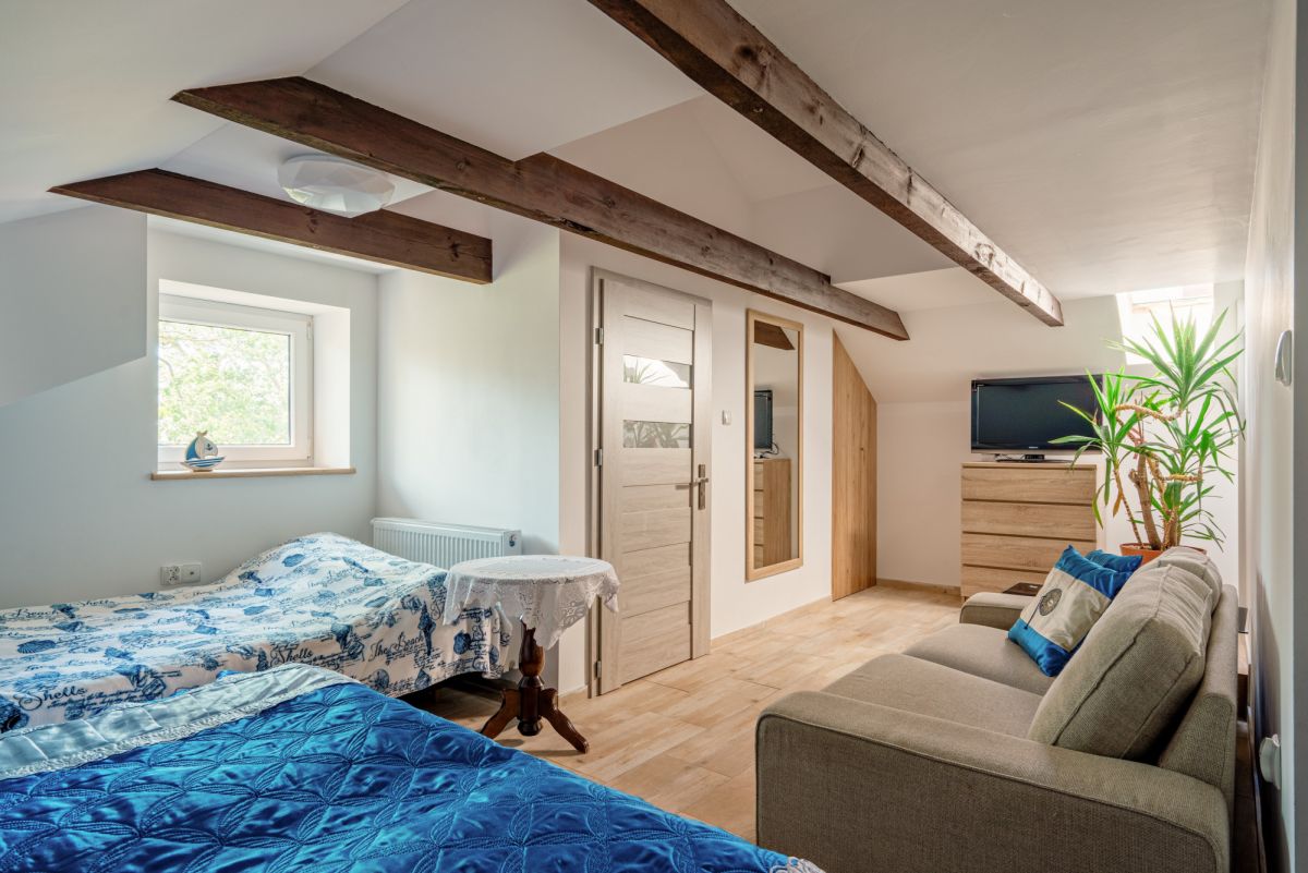 Poddasze: 2 apartamenty, 1 pokój z łazienką oraz osobne 3-pokojowe mieszkanie z widokiem na morze