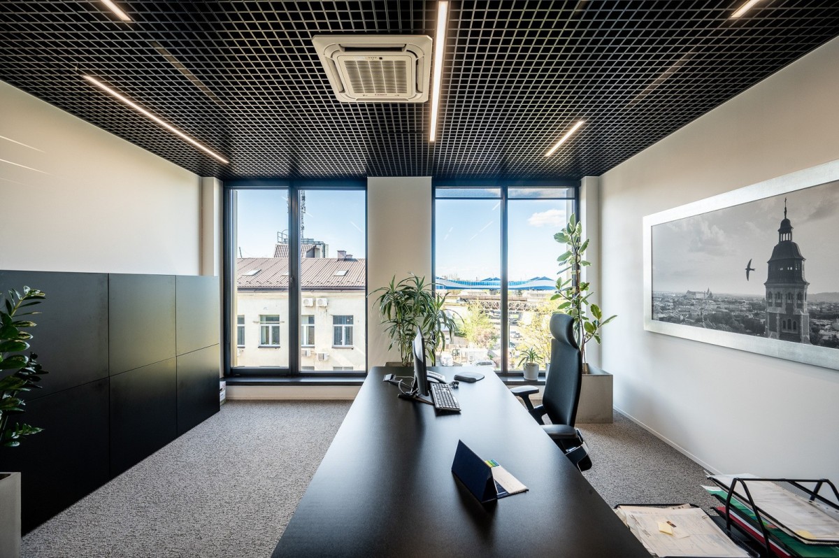 PRESTIŻOWA PRZESTRZEŃ BIUROWA NA OSTATNIEJ KONDYGNACJI, W PEŁNI PRZESZKLONEGO BIUROWCA PRZY JEDNEJ Z GŁÓWNYCH ULIC KRAKOWA