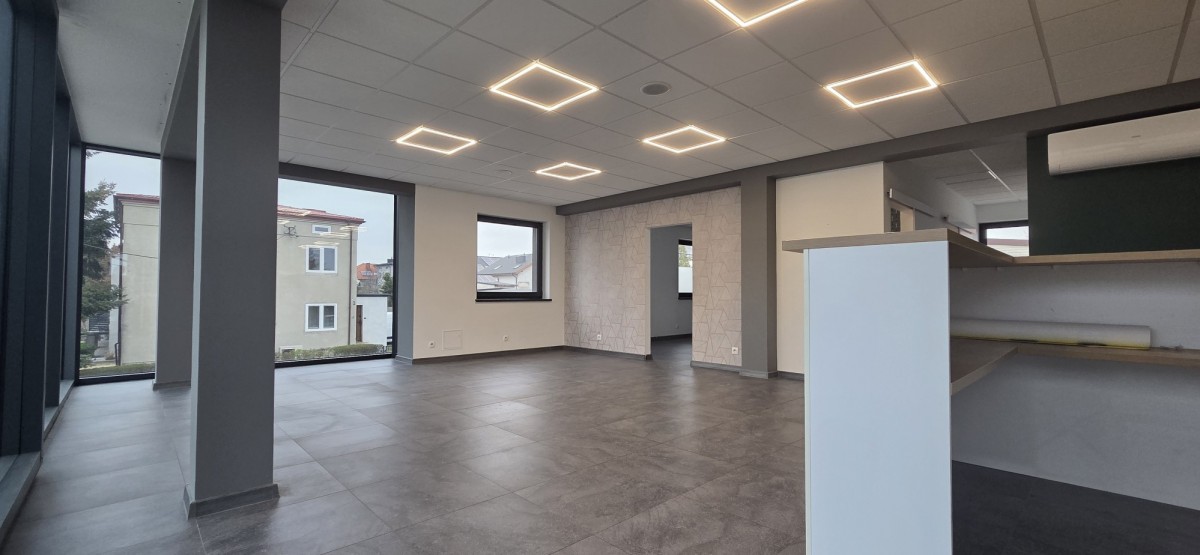 Do wynajęcia przestronny, nowoczesny lokal użytkowy o powierzchni ponad 120 m², położony w Brzezinach na popularnym osiedlu Przedwiośnie.