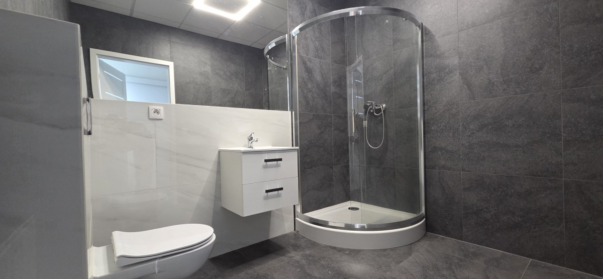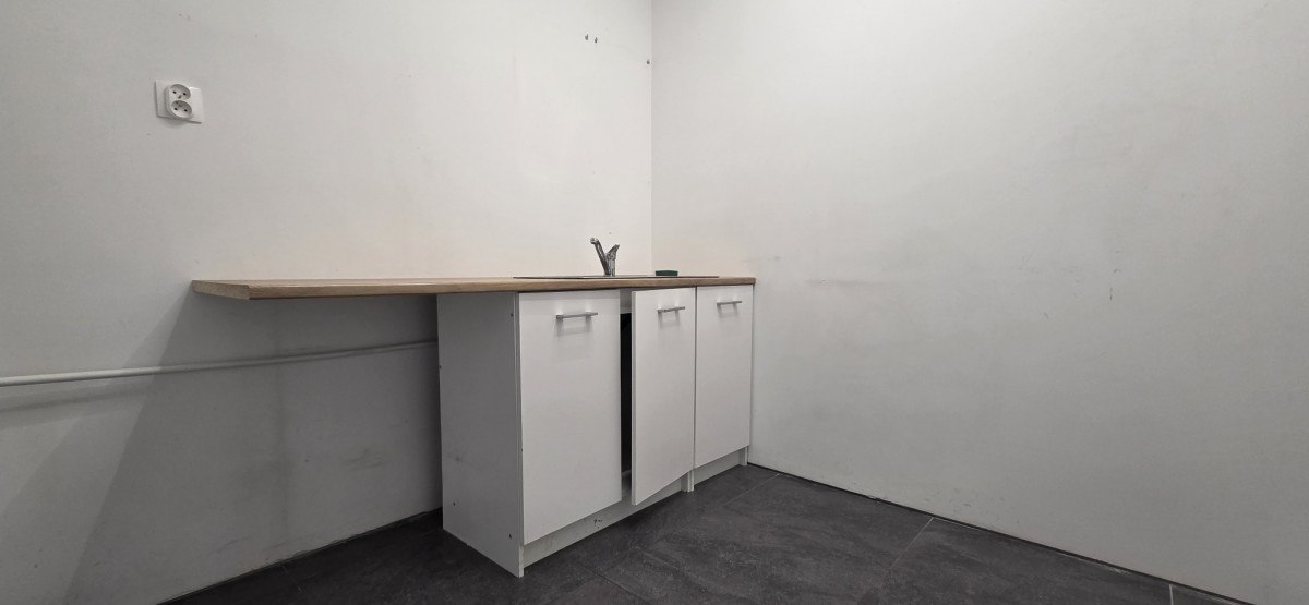 Na lokal składa się: duża sala główna, mniejsza sala (np. zajęciowa), cztery małe pomieszczenia (np. szatnie lub biura), pomieszczenie gospodarcze oraz łazienka z prysznicem.