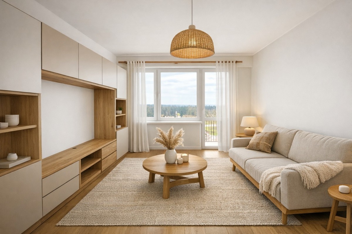 Mieszkanie posiada funkcjonalny, dwustronny układ (ekspozycja północpołudnie), co zapewnia bardzo dobre doświetlenie wnętrz przez cały dzień. Z salonu wyjście na balkon z pięknym widokiem na Beskid Żywiecki oraz Babią Górę.