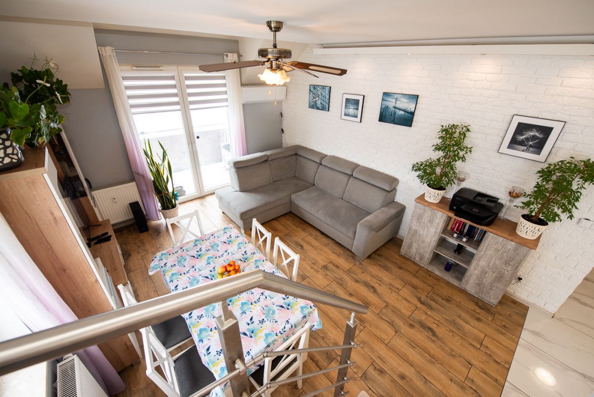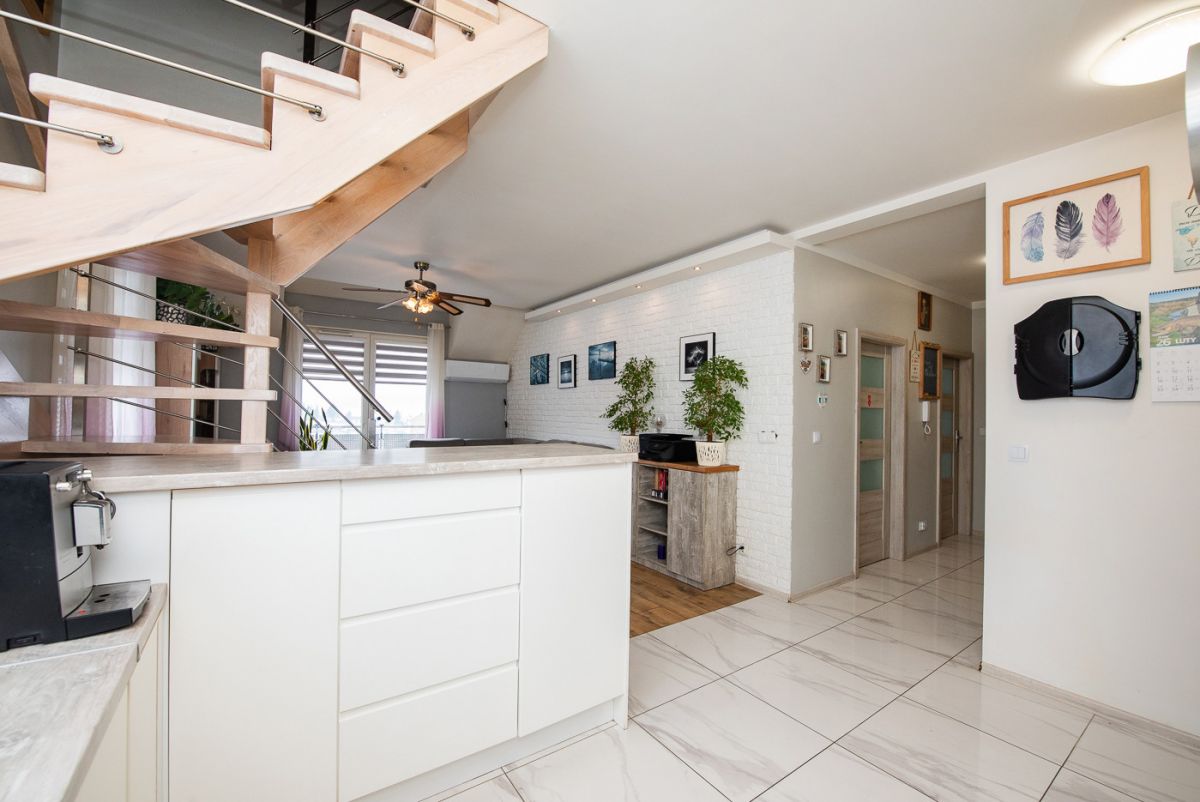 Na sprzedaż dwupoziomowe, 5‑pokojowe mieszkanie z garderobą, położone na ostatnim - trzecim piętrze bloku z windą z 2018 roku przy ul. Bartąskiej 113 w Bartągu.