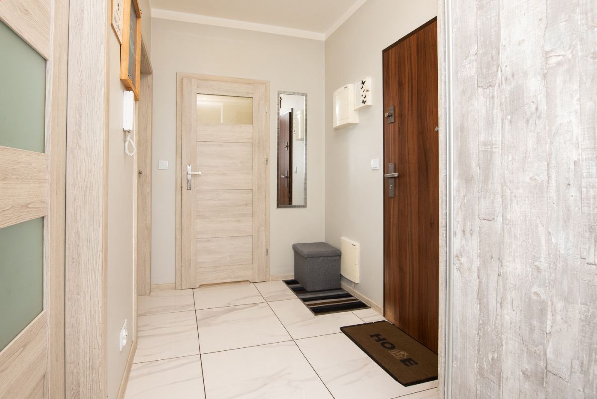 Trzypiętrowy blok mieszkalny z 2018 roku, wyposażony w windę. Klatka schodowa jest zadbana, a budynek ogrzewany jest z sieci miejskiej. Wokół znajdują się ogólnodostępne miejsca parkingowe. Do mieszkania przynależy piwnica.