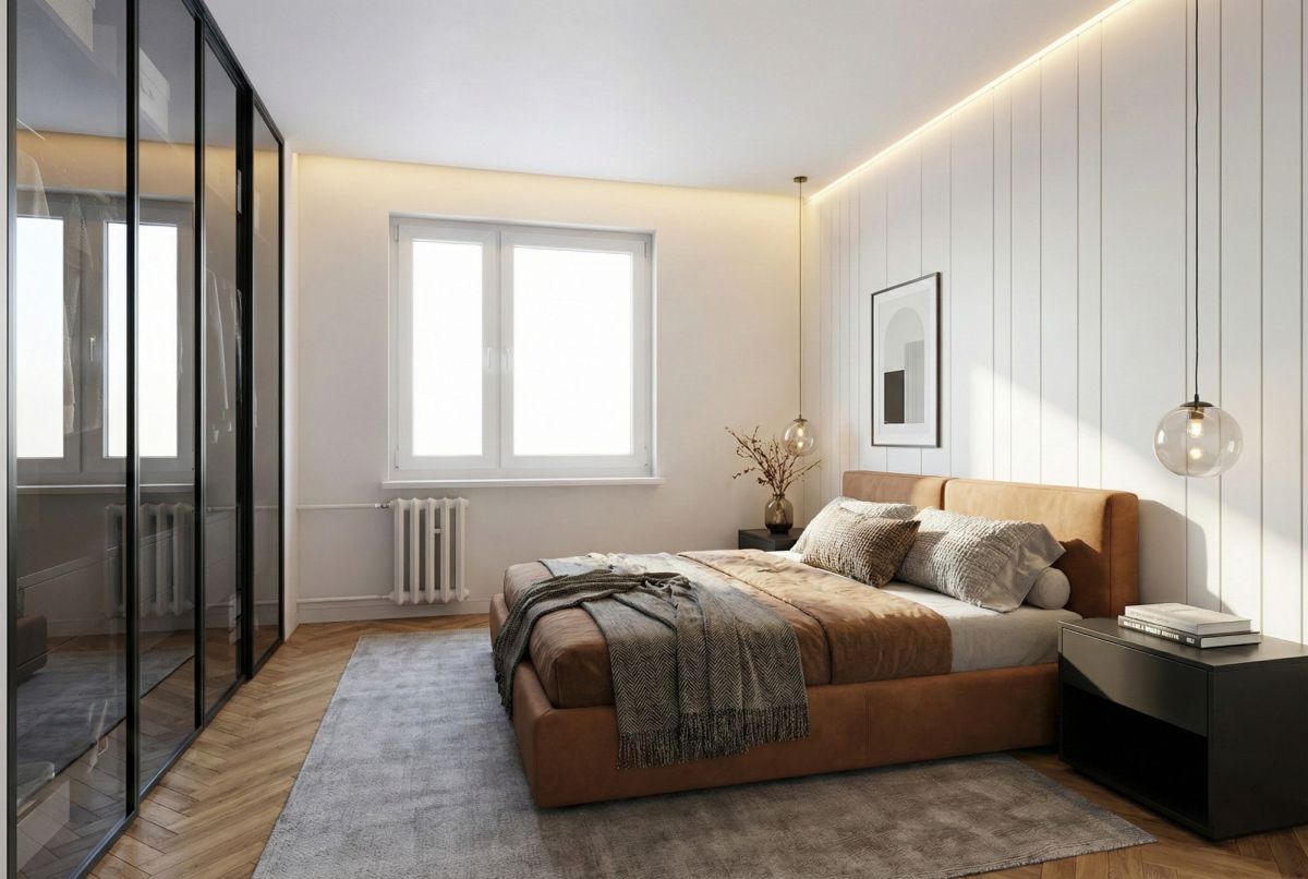 Wskazówka projektowa: Jeśli marzysz o nowoczesnym układzie, możesz przenieść kuchnię do salonu (tworząc aneks), a w jej miejscu zyskać dodatkową, trzecią sypialnię lub gabinet.