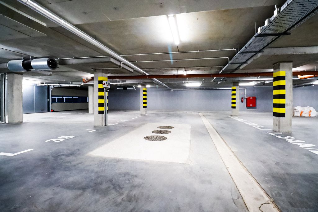 - Przemyślane zagospodarowanie przestrzeni osiedla: szerokie chodniki, zieleń, plac zabaw, miejsca postojowe.