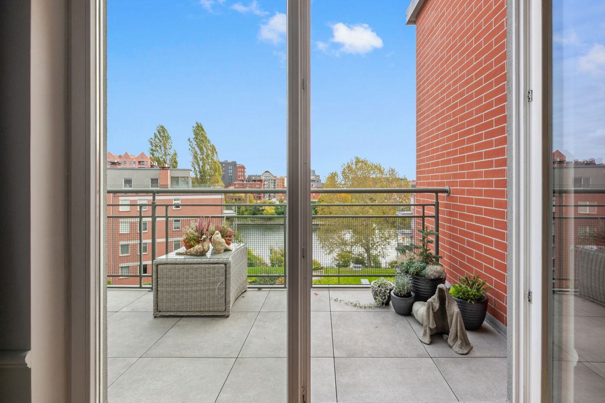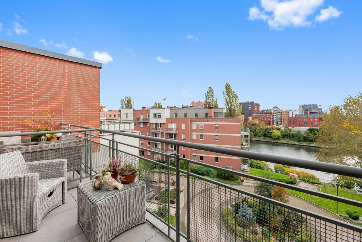 Z salonu i kuchni rozpościera się bezpośredni widok na Motławę, który nadaje wnętrzu spokój, głębię i wyjątkowy charakter.