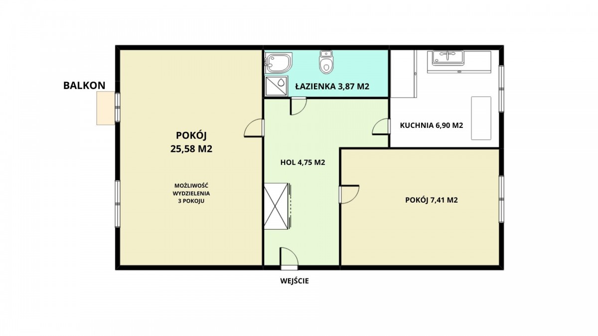 Mieszkanie jest w stanie do remontu, co jest jego dużym atutem. Kupując aranżujesz przestrzeń dokładnie pod swoje oczekiwania.