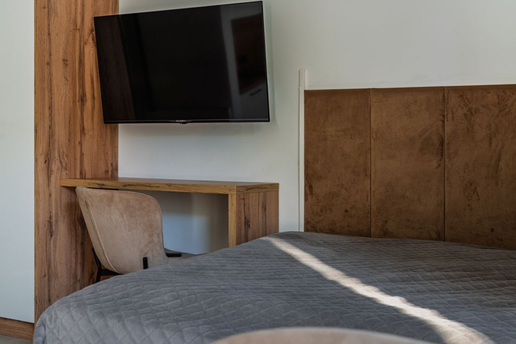 • W skład apartamentu wchodzi: część dzienna/sypialniana z aneksem kuchennym i wyjściem na taras oraz łazienka.
