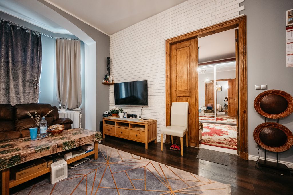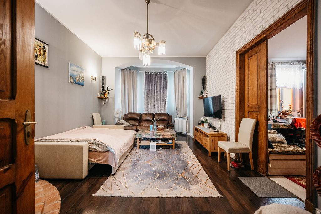 Duże okna oraz wysokość charakterystyczna dla kamienic sprawiają, że wnętrza są doskonale doświetlone naturalnym światłem. Pomieszczenia zostały zaprojektowane tak, aby zapewniały maksymalny komfort codziennego życia — zarówno dla pary, rodziny, jak i osób pracujących zdalnie.