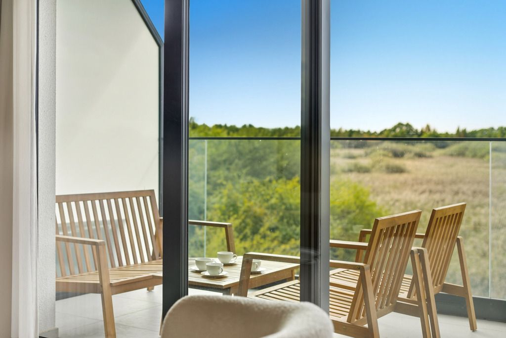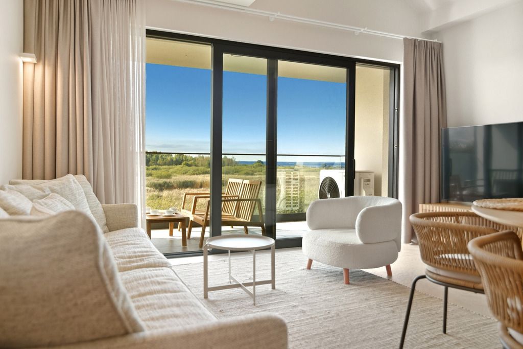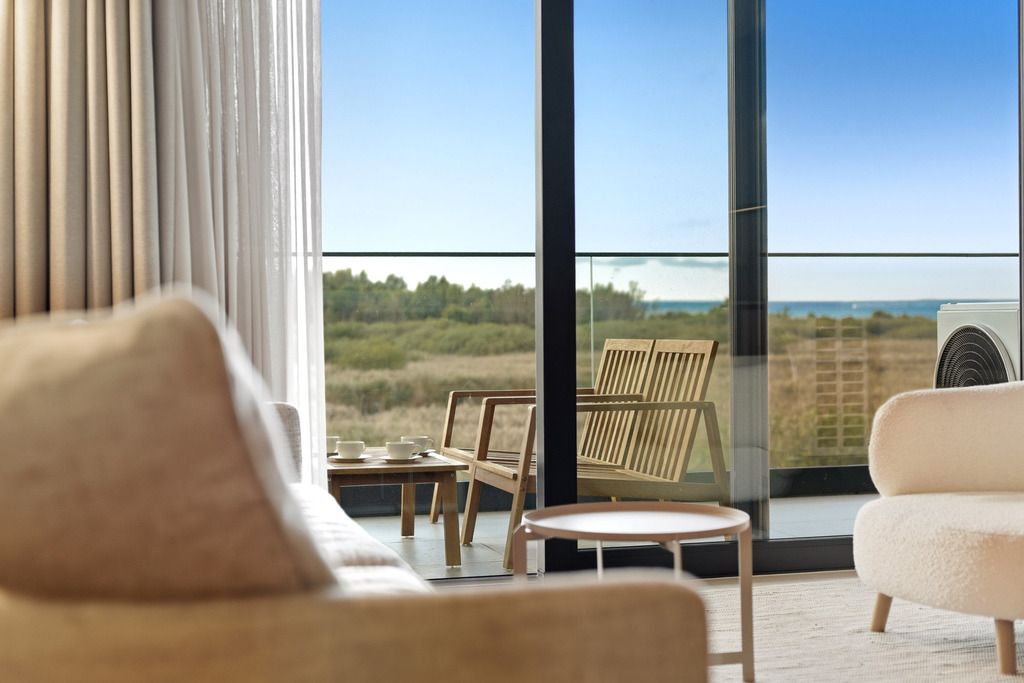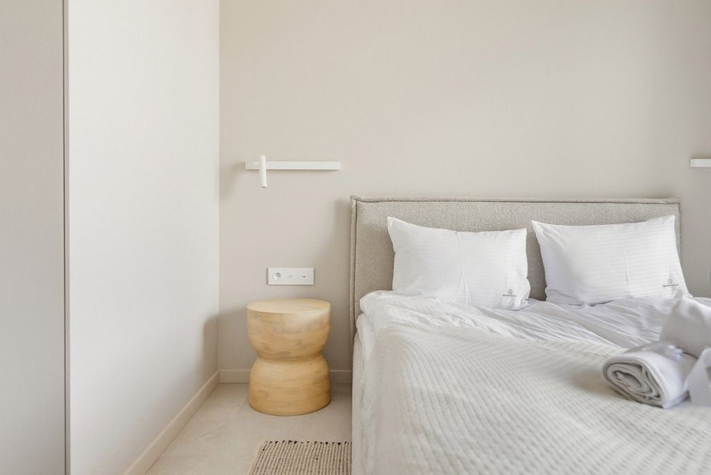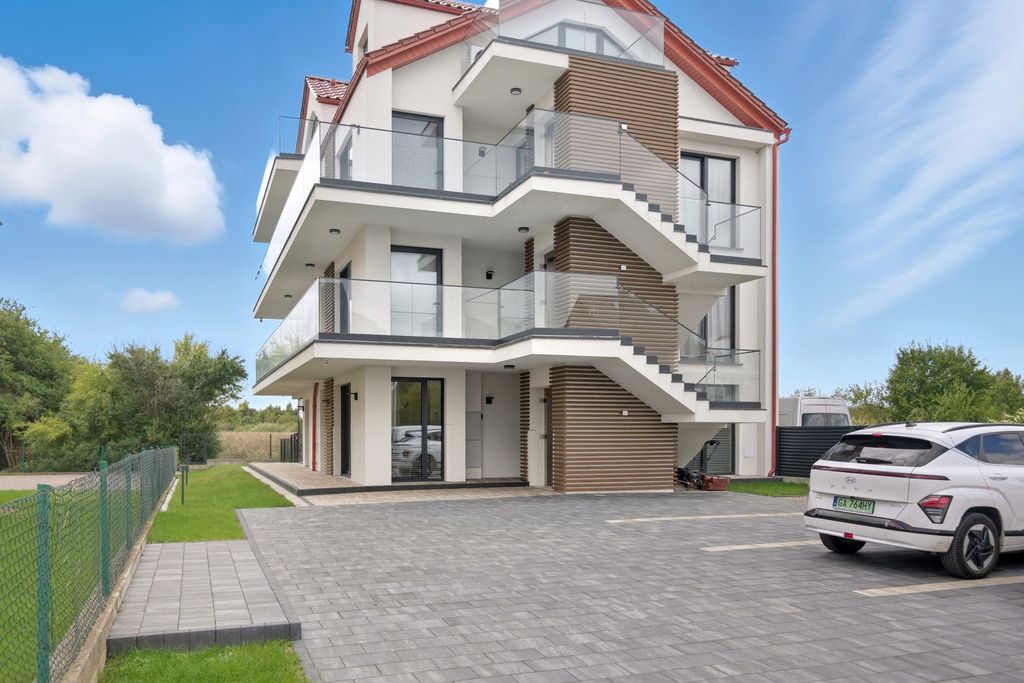 nowoczesny design połączenie drewna i bieli, szlachetne materiały, wysokiej jakości sprzęt, topowe oświetlenie. Udogodnienia: klimatyzacja, panoramiczne przesuwne drzwi balkonowe.