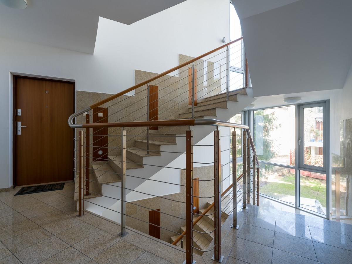 na kameralnym, zamkniętym i monitorowanym osiedlu składającym się z zaledwie czterech niewielkich apartamentowców, co daje wyjątkowe poczucie
