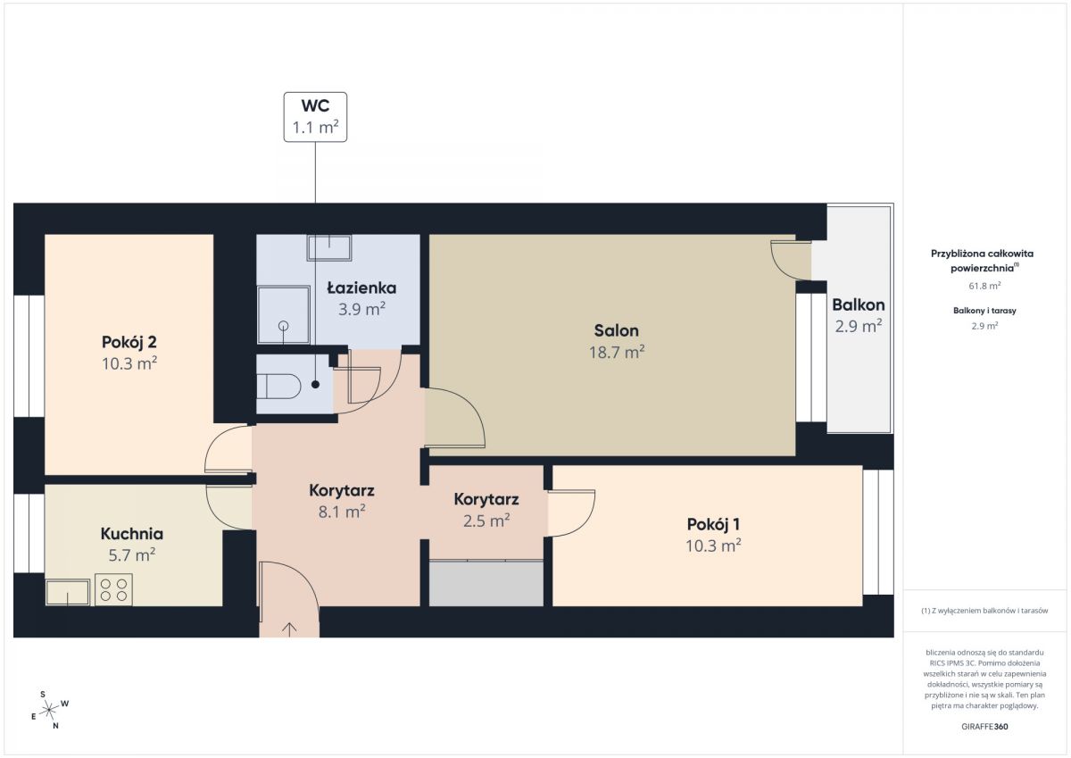 Przemyślany układ - 64.5 m², 3 pokoje, kuchnia, toaleta i łazienka