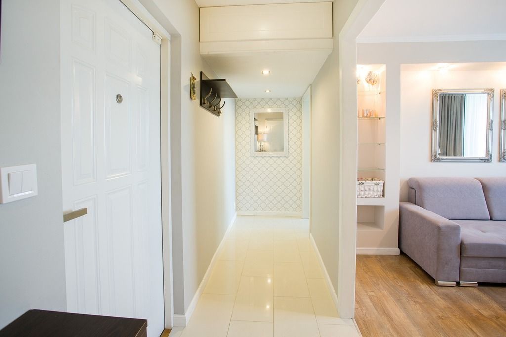 - Przedpokój: funkcjonalny, z którego prowadzą wejścia do pozostałych pomieszczeń.