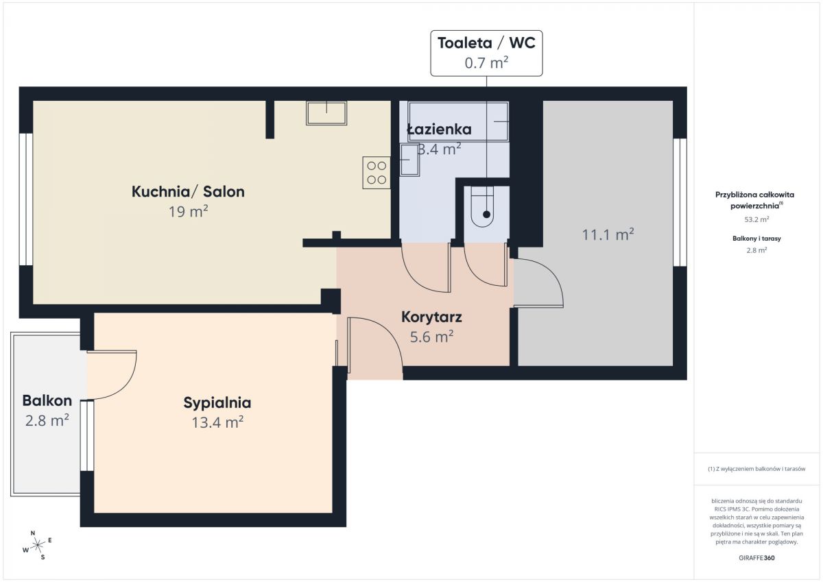 - funkcjonalny przedpokój z dużą zabudowaną szafą