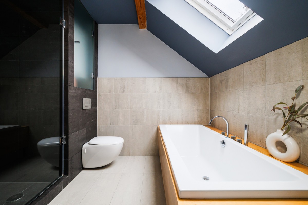 * łazienka z wanną i prysznicem