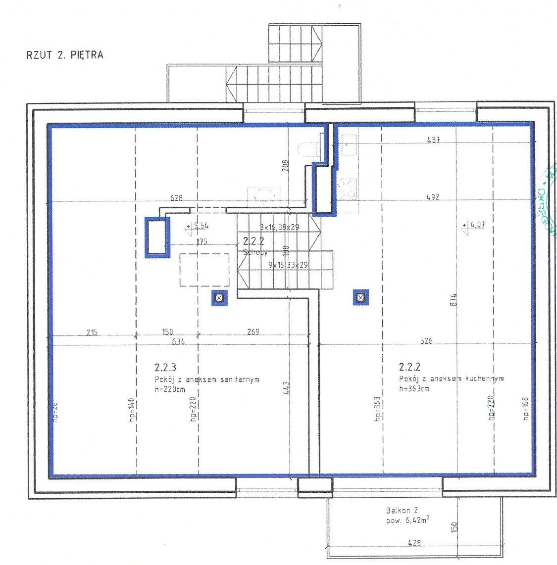 - poziom 2: serce mieszkania - przestronny, wysoki salon z balkonem i otwartą kuchnią, który możesz zaprojektować dokładnie tak, jak chcesz; h=3,63m