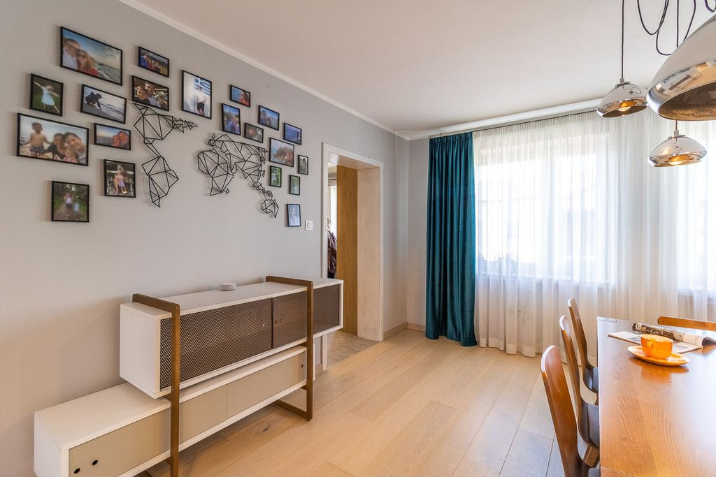 - Salon 36 m², jasny, dwustronny, z dużymi oknami po obu stronach i wyjściem na loggię. Przestrzeń podzielona na część wypoczynkową i jadalnianą,