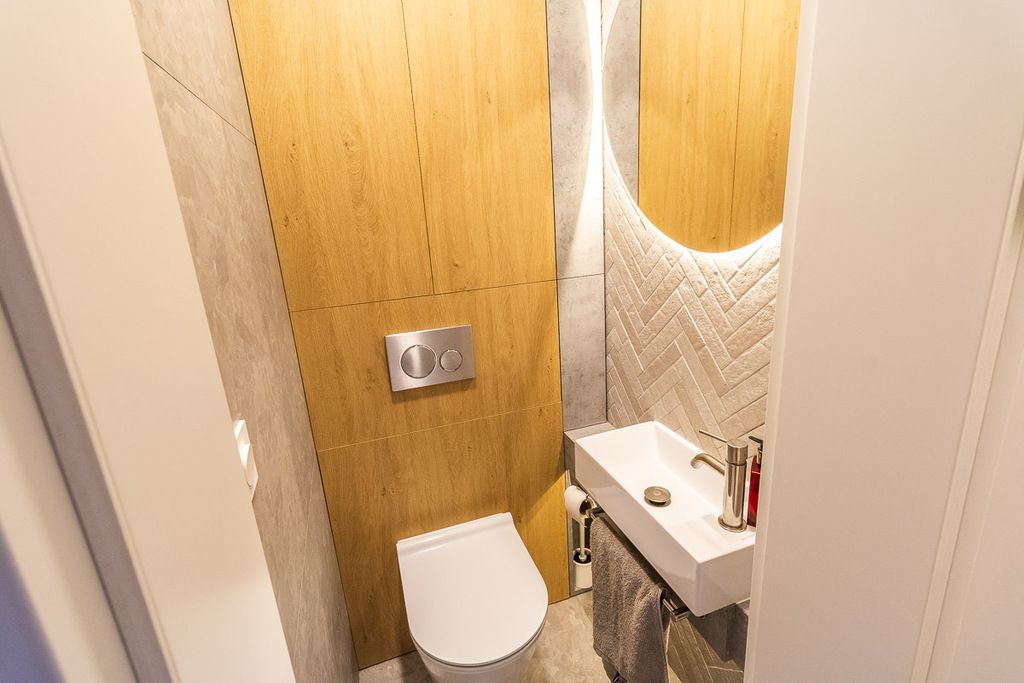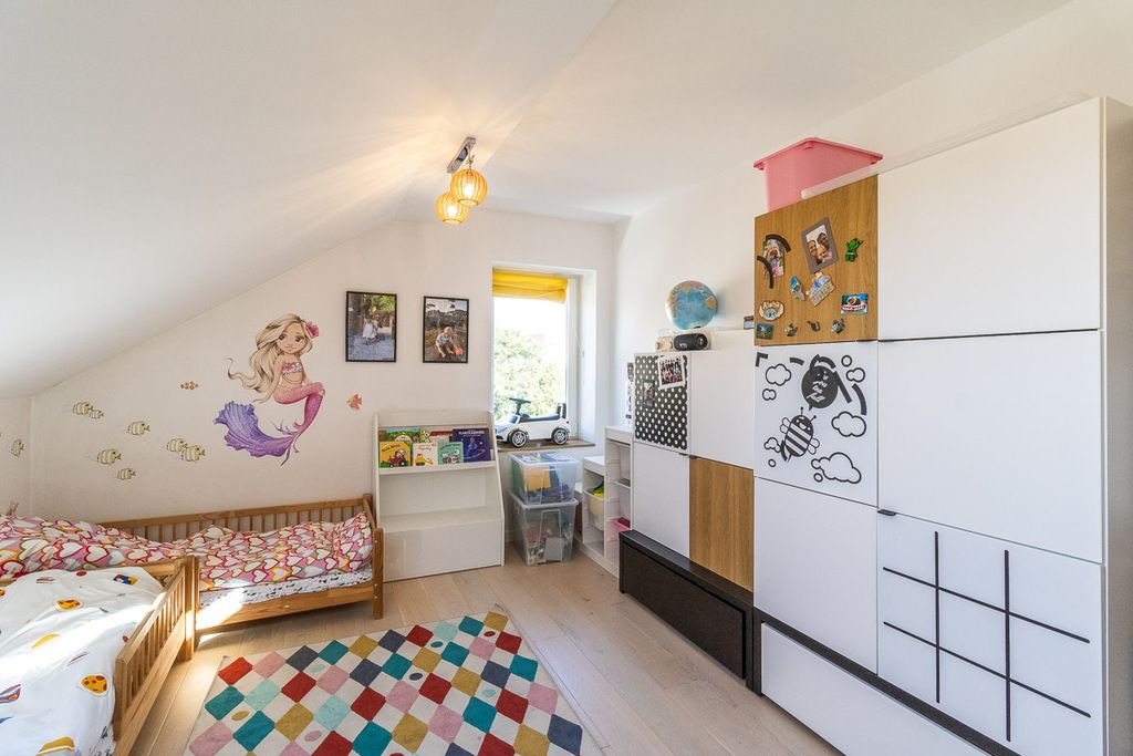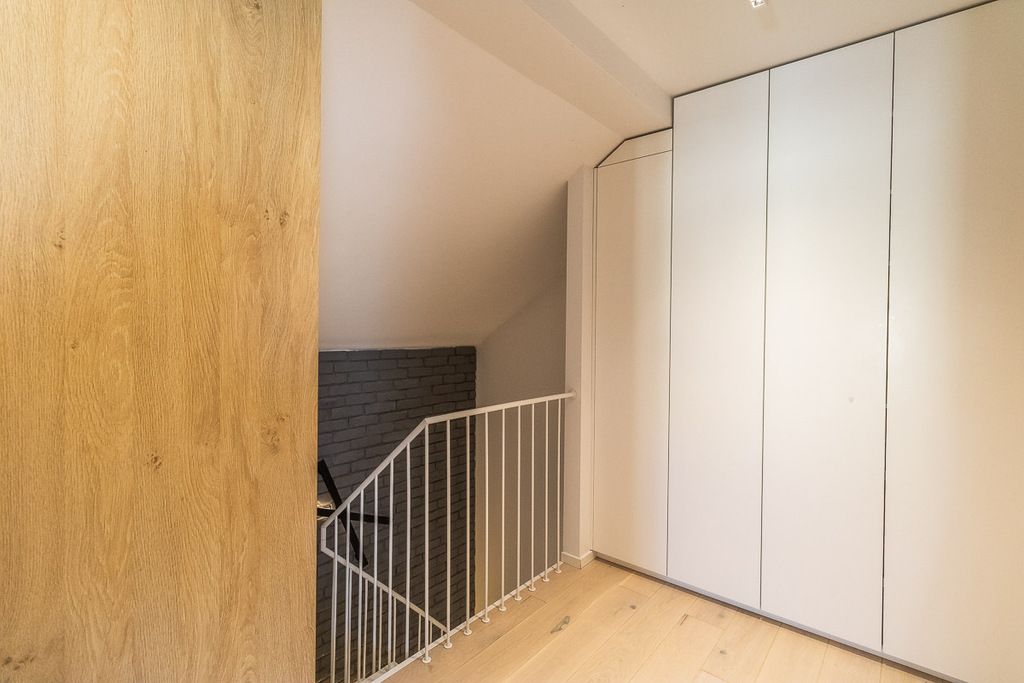 - Toaleta 1,1 m², - Przedpokój 9,7 m², zabudowa pod schodami, duża pojemna szafa.