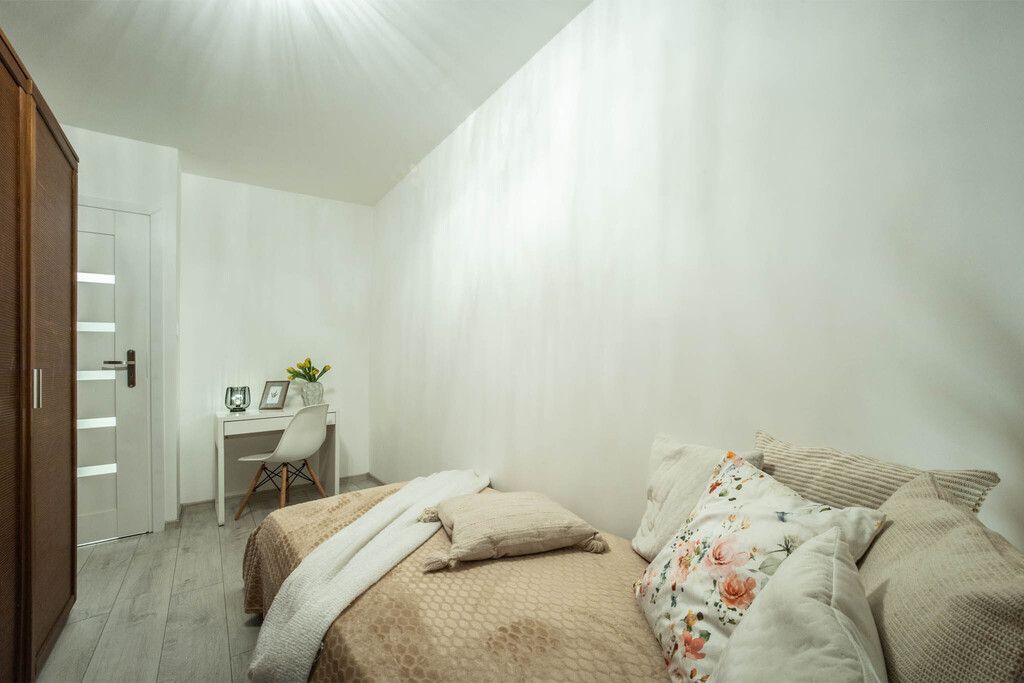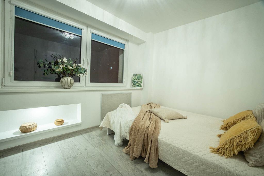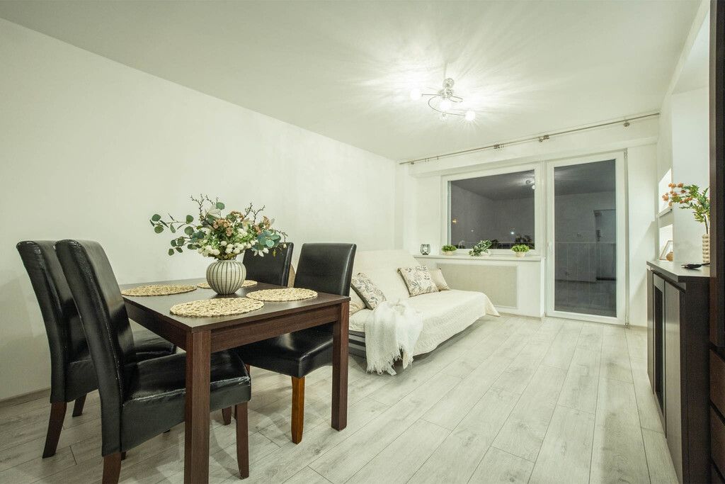 Mieszkanie jest pełne światła, dzięki ekspozycji na wschód i zachód. Promienie słońca w naturalny sposób oświetlają wnętrza, tworząc przytulną atmosferę przez cały dzień. Mieszkanie jest w pełni umeblowane - znajdziesz tu nowe meble oraz zabudowy pod wymiar, co gwarantuje wygodę i funkcjonalność.