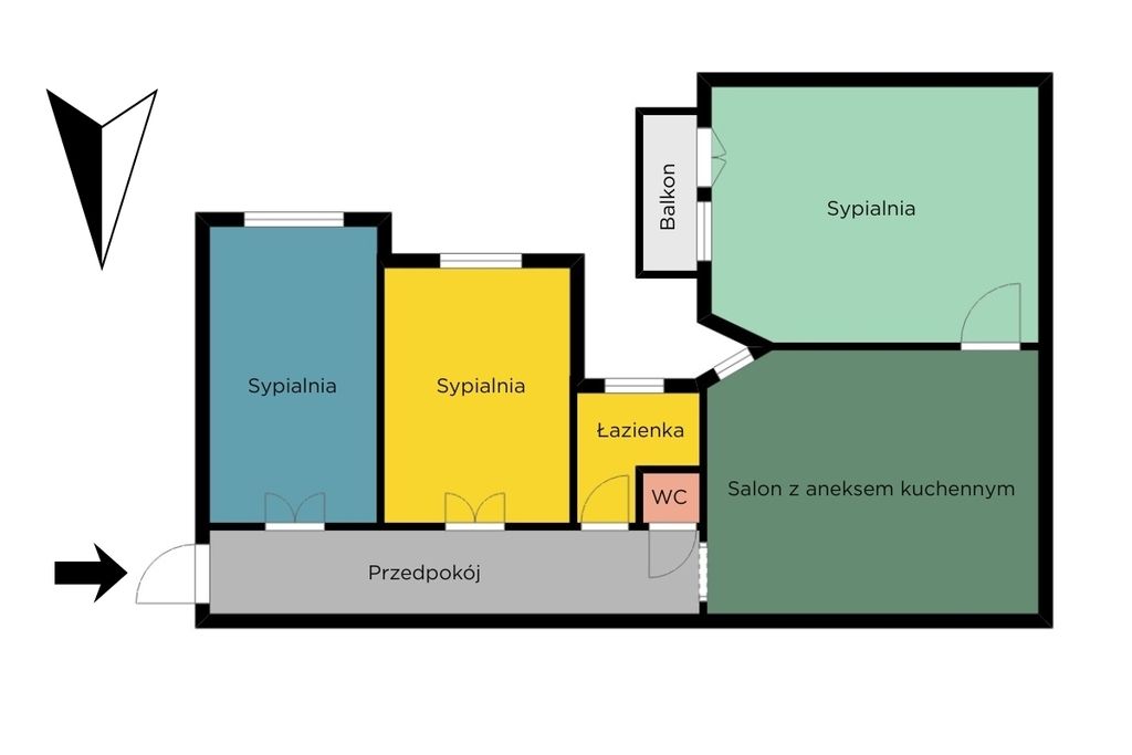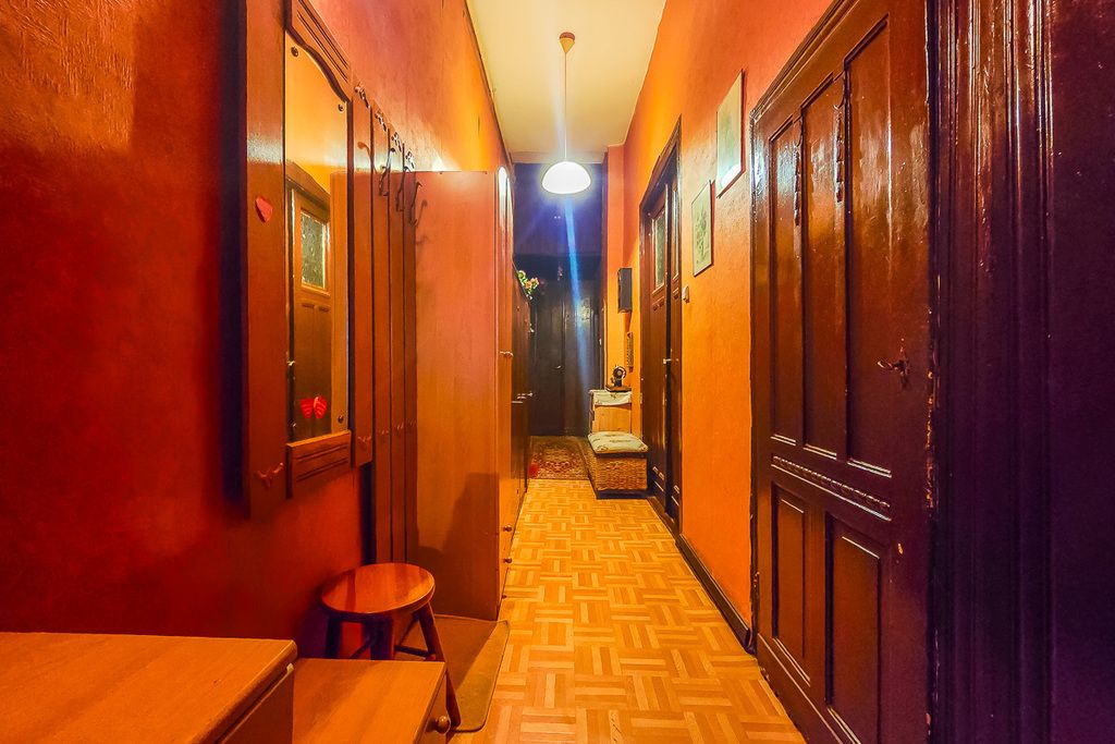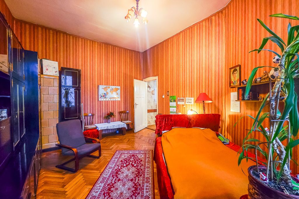 Przestronne, rozkładowe mieszkanie z jednym pokojem przechodnim, którym jest salom z aneksem kuchennym, poza tym są jeszcze 3 sypialnie z oknami wychodzącymi na południe, wschód i zachód, które zapewniają dużo naturalnego światła. Łazienka i wc osobno, przestronny przedpokój, a w jednej z sypialni zachowane są piony, co pozwala na aranżacje pomieszczeń wg własnego pomysłu. Wysokość pomieszczeń wynosi aż 375 cm, co dodatkowo potęguje poczucie przestrzeni. Mieszkanie wymaga remontu.