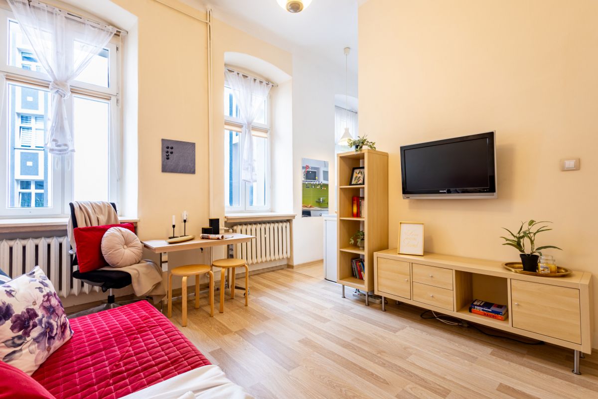Kawalerka o powierzchni 24,77 m², zlokalizowana na parterze zadbanej, zabytkowej kamienicy u zbiegu ul. Więckowskiego i Lipowej — propozycja łącząca funkcjonalność kompaktowego układu z charakterem śródmiejskiej architektury.