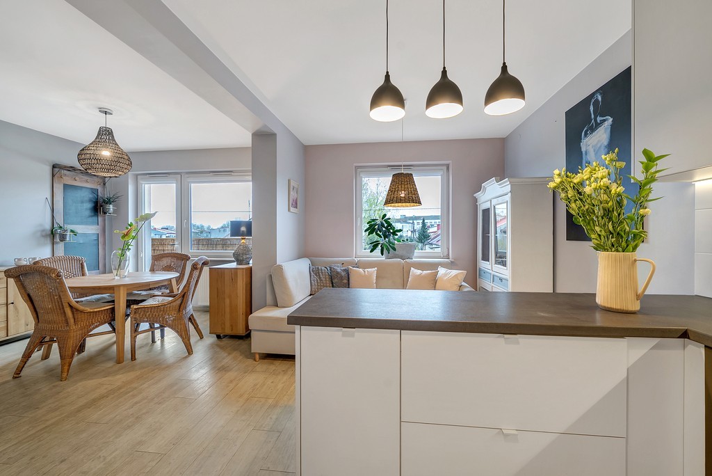 - W cenie zawarte są zabudowy meblowe, sprzęt AGD oraz część mebli