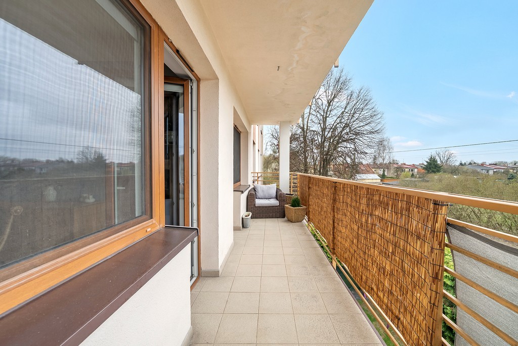 - Prywatny taras: widok na niską zabudowę jednorodzinną — boczny widok na zieleń Parku Rysy