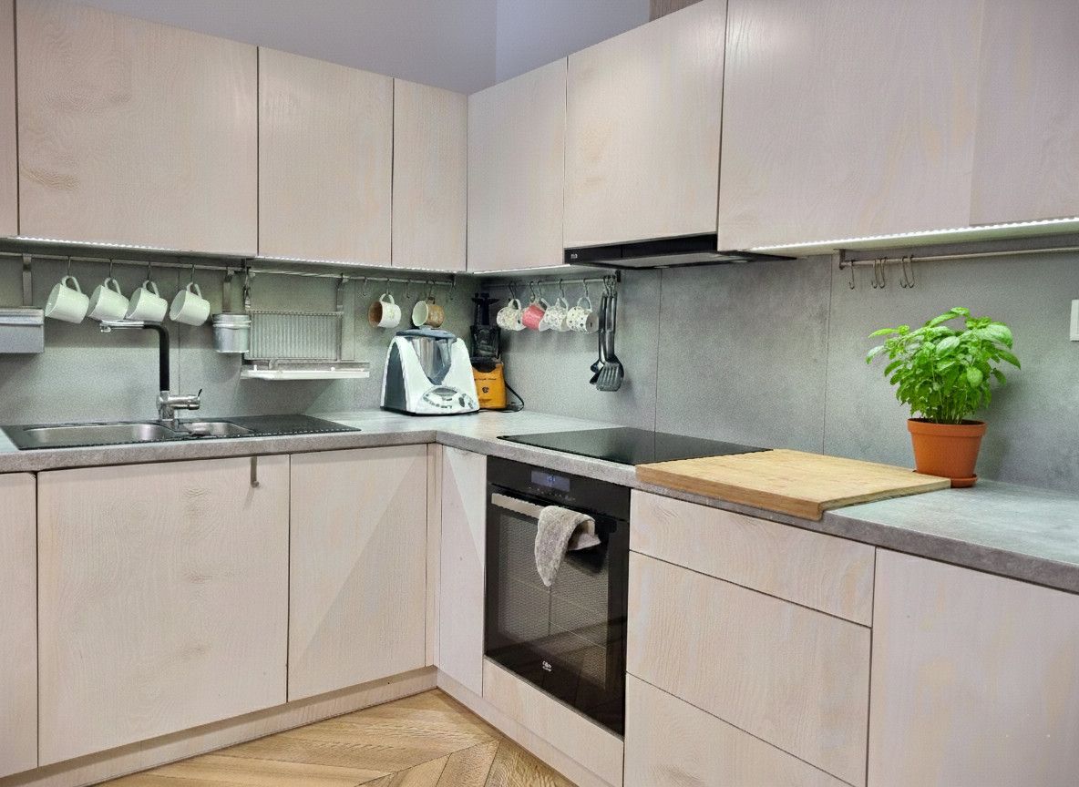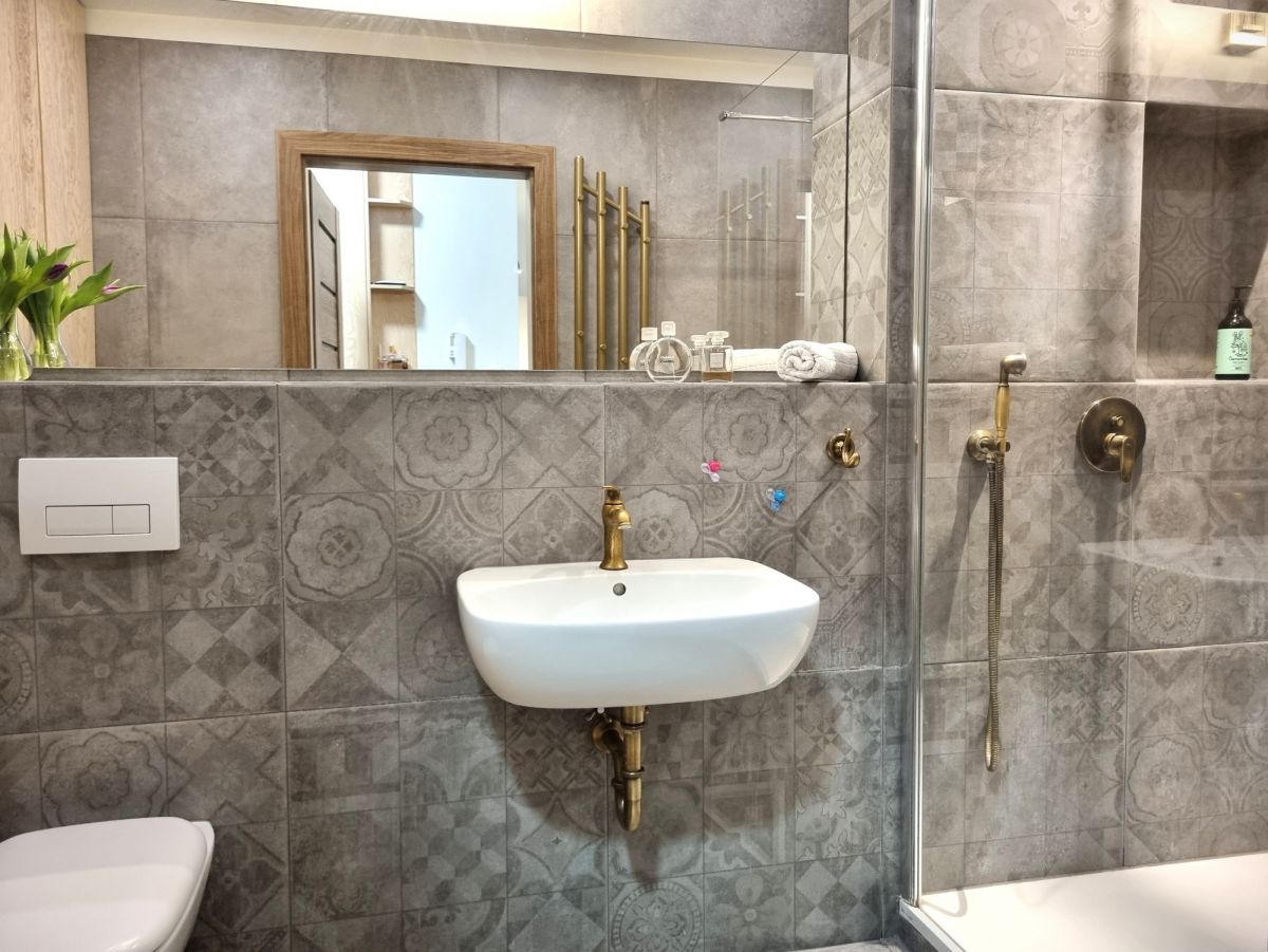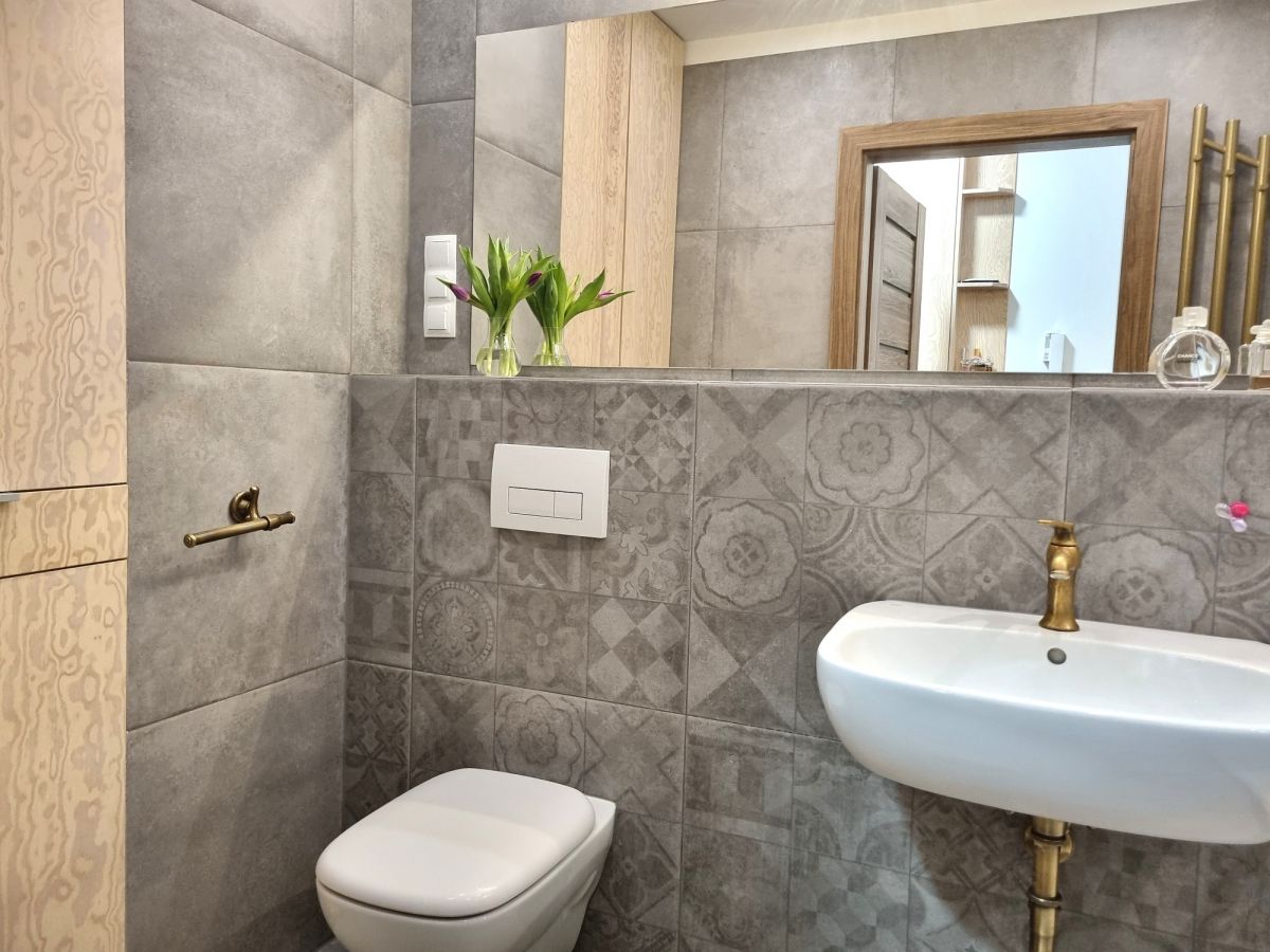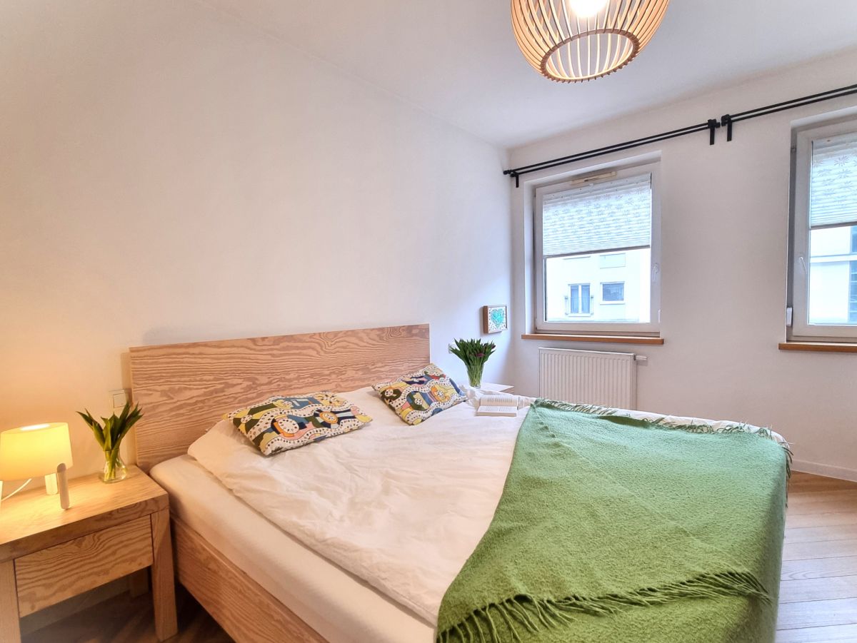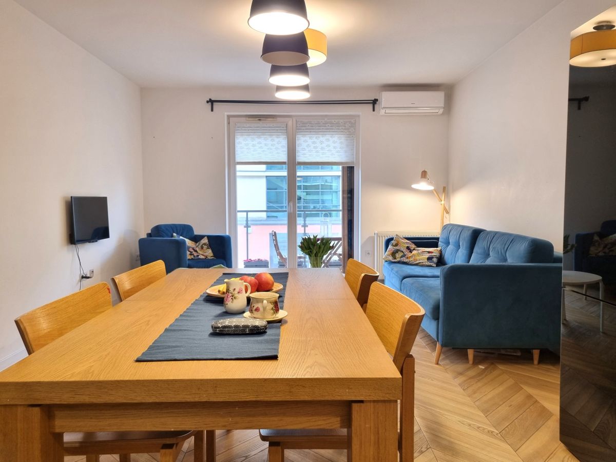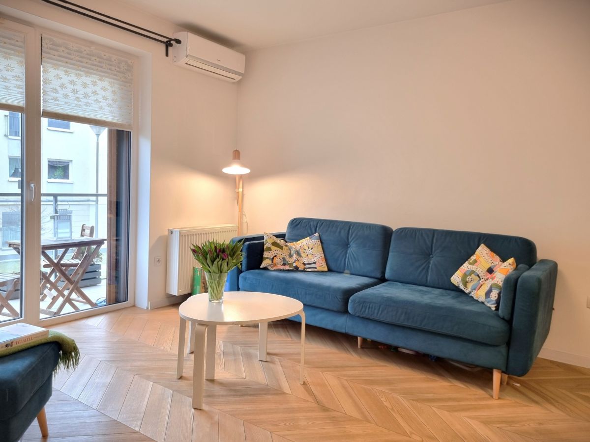 Mieszkanie wykończone z dbałością o detale i funkcjonalność. W pokojach położono deskę jesionową w elegancką jodełkę, w przedpokoju i łazience estetyczne kafle. Kuchnia w zabudowie, otwarta na salon. W sypialni duże łóżko oraz sześciodrzwiowa szafa w zabudowie. Instalacja elektryczna została indywidualnie zaprojektowana na etapie budowy - zwiększona liczba gniazdek oraz praktyczne rozwiązania, m.in. możliwość wyłączenia światła w sypialni bezpośrednio z łóżka. Ekspozycja południowa zapewnia przyjemne światło.