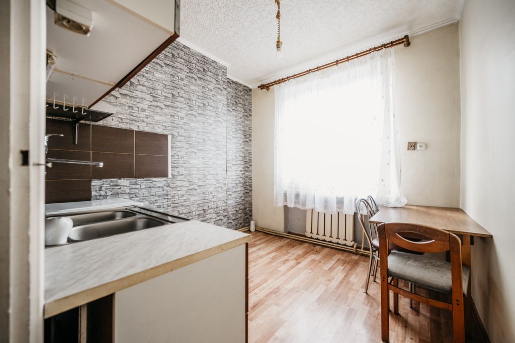 W budynku dostępne są ogrzewanie oraz ciepła woda z sieci miejskiej, co zapewnia komfort użytkowania. Okna wykonane są z PCV, niemniej jednak mieszkanie wymaga remontu, co stwarza doskonałą okazję do aranżacji według indywidualnych preferencji nowych właścicieli.