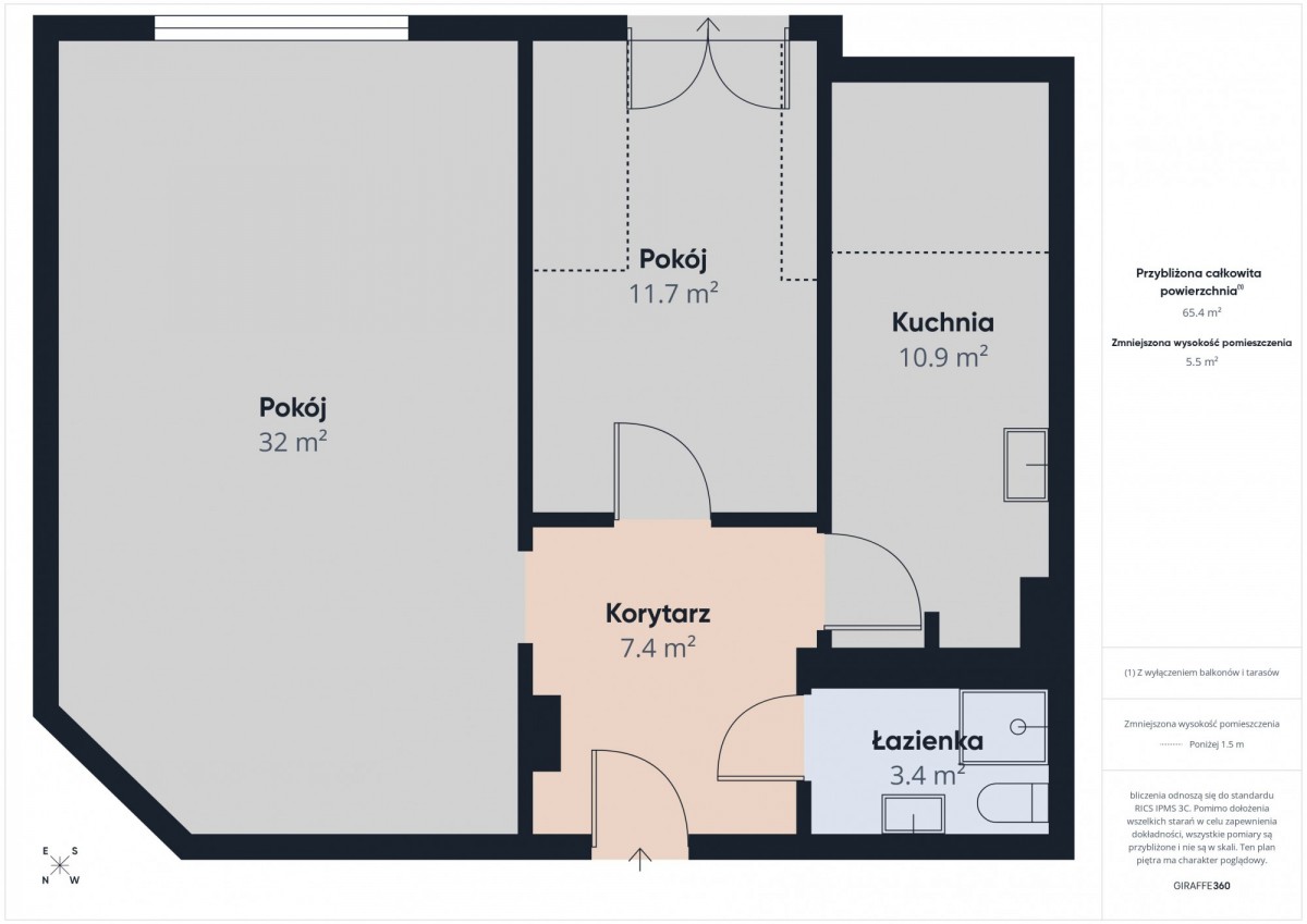 - funkcjonalny korytarz (7,5 m²).