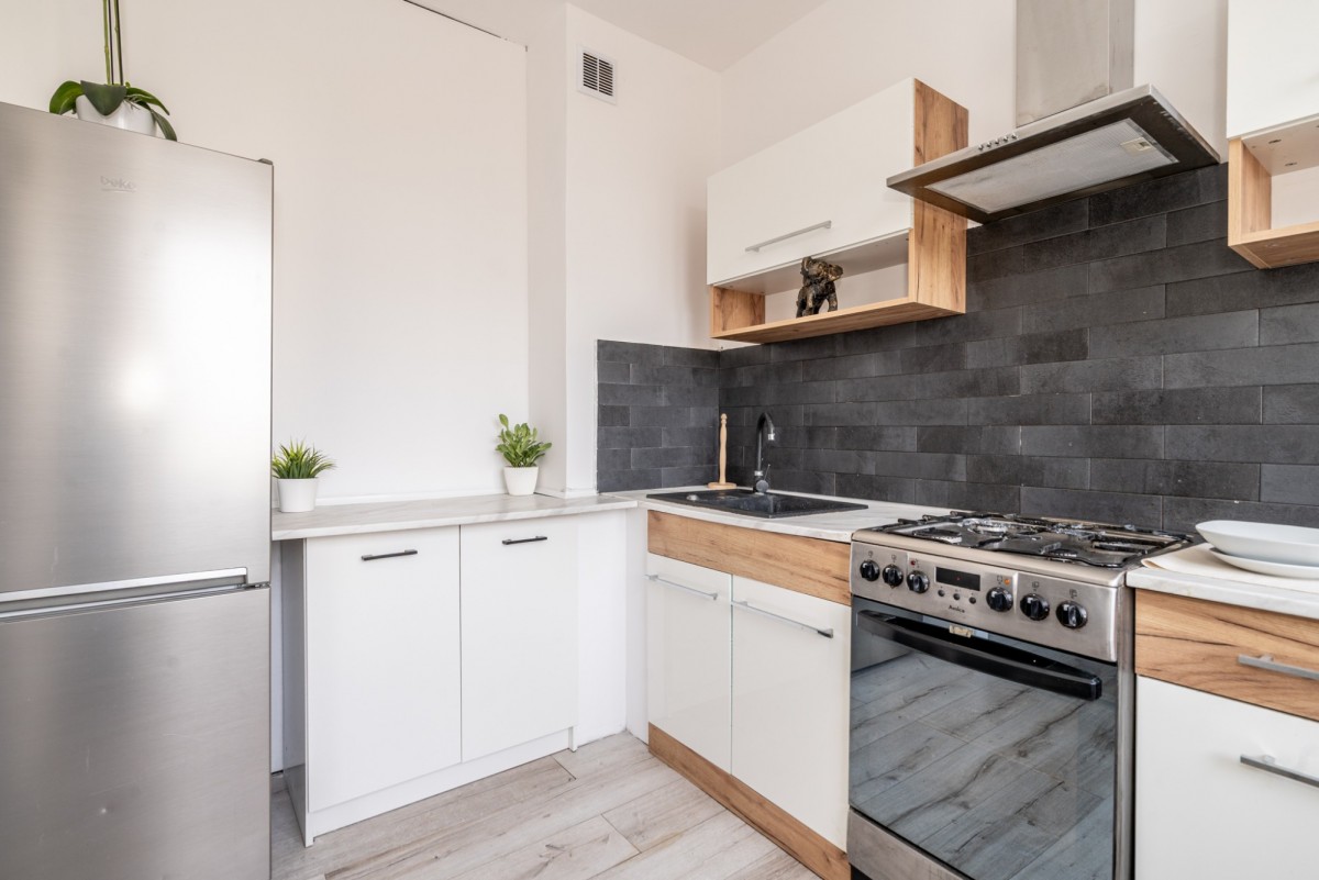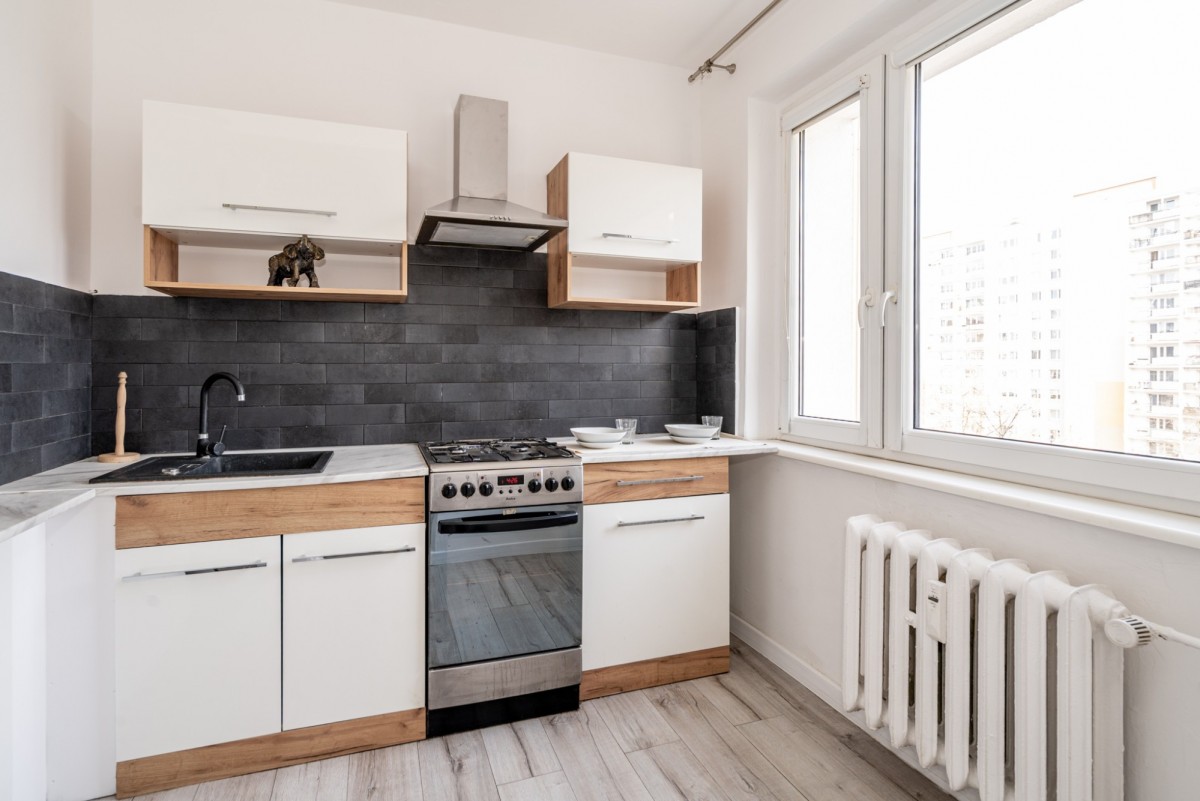 Układ mieszkania: duży pokój, kuchnia z oknem, łazienka z toaletą