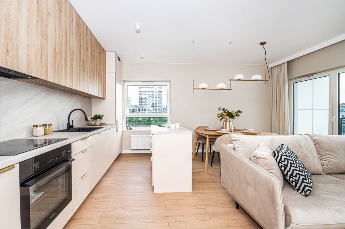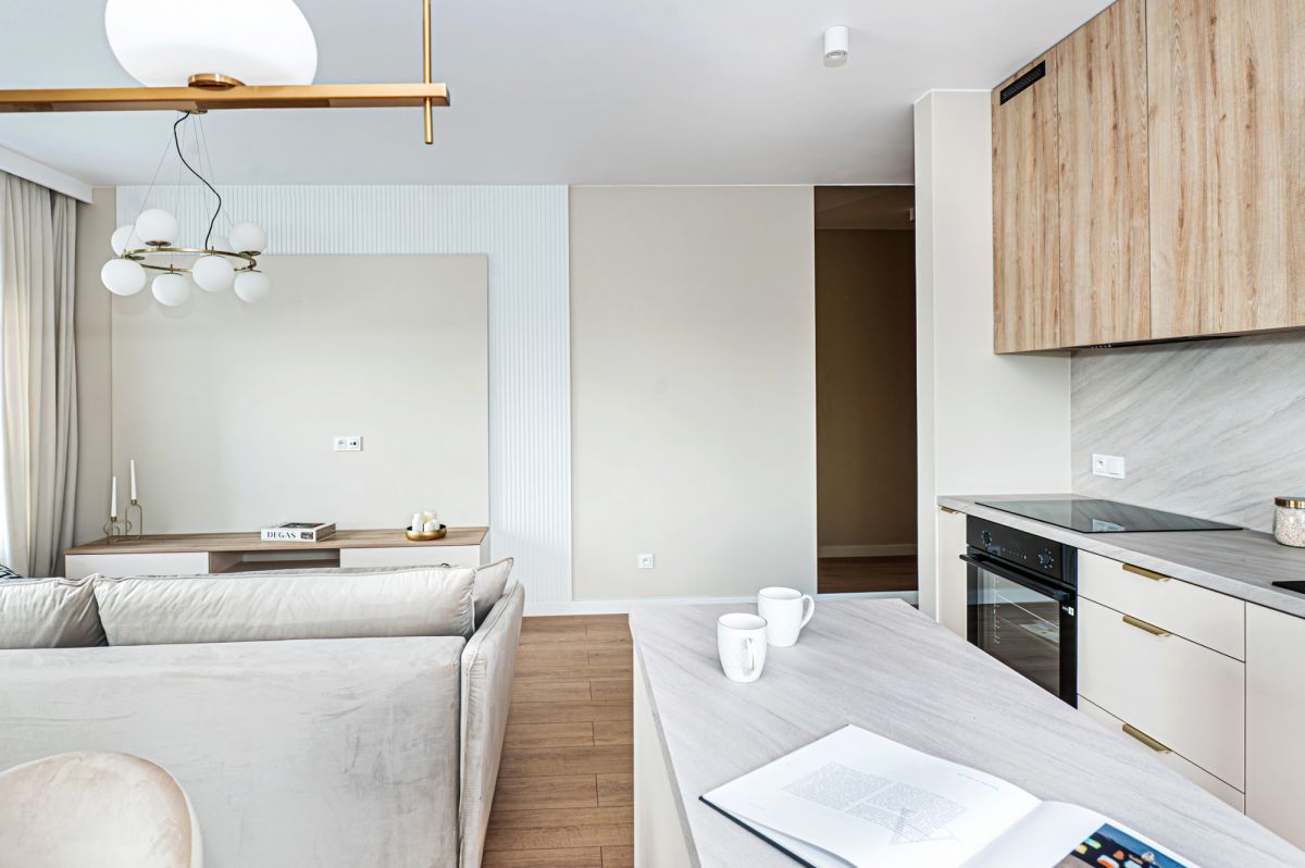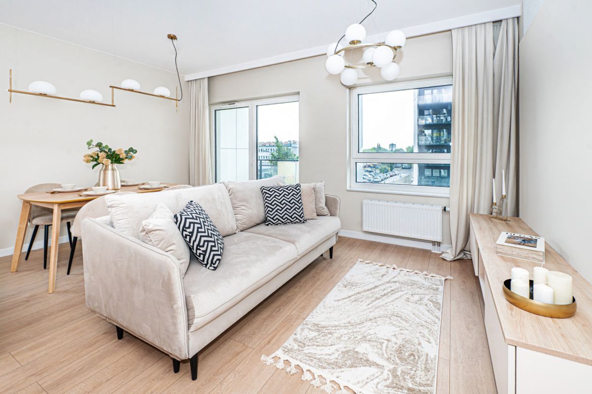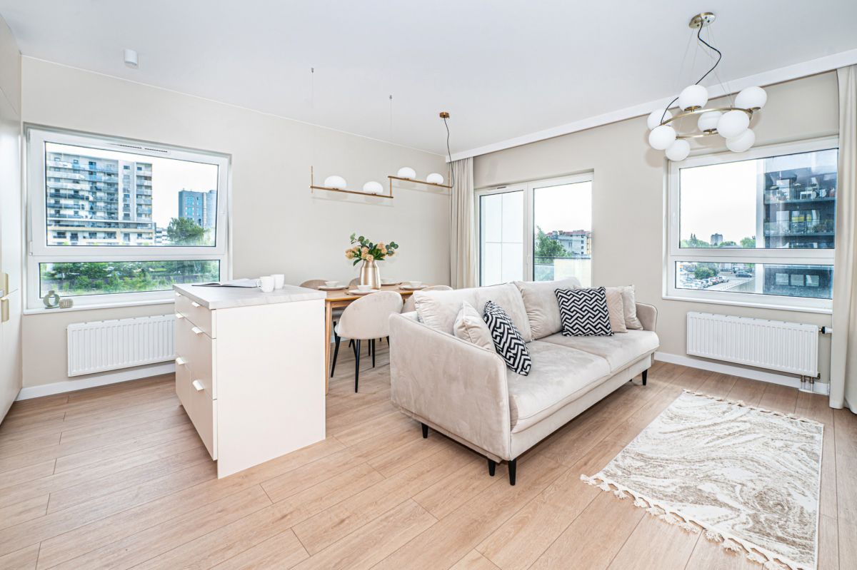 - przestronny salon z aneksem kuchennym oraz osobne dwa pokoje, co jest szczególnie przydatne w przypadku pracy czy nauki zdalnej