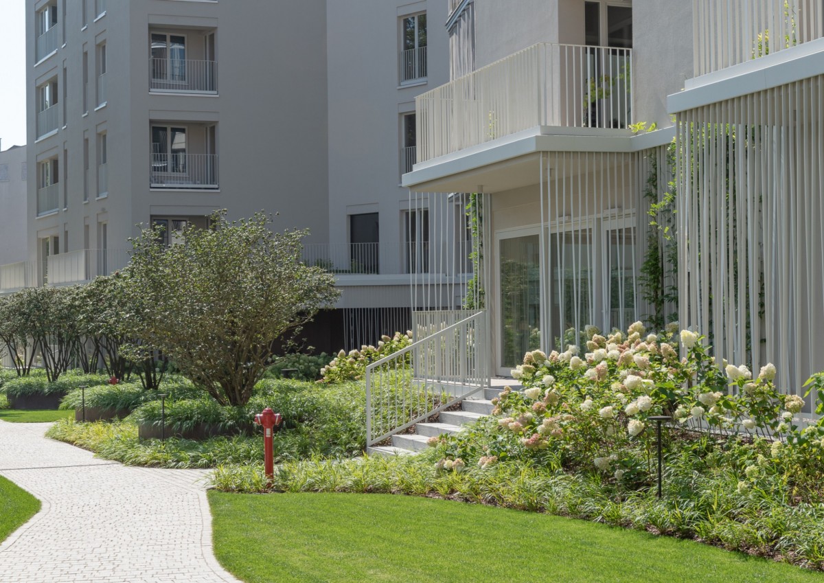 Teren osiedla jest zagospodarowany wyjątkową zielenią, o którą dbają dedykowani ogrodnicy. Osiedle jest monitorowane, a o bezpieczeństwo dba ochrona działająca 24/7. Komfort funkcjonowania dodatkowo zapewnia konsjerż.