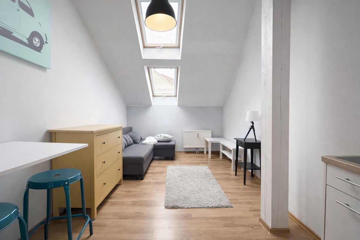 kawalerka o powierzchni 26,9 m² (z dodatkowym pokojem z oknem, co znacząco podnosi jej funkcjonalność i atrakcyjność najmu).